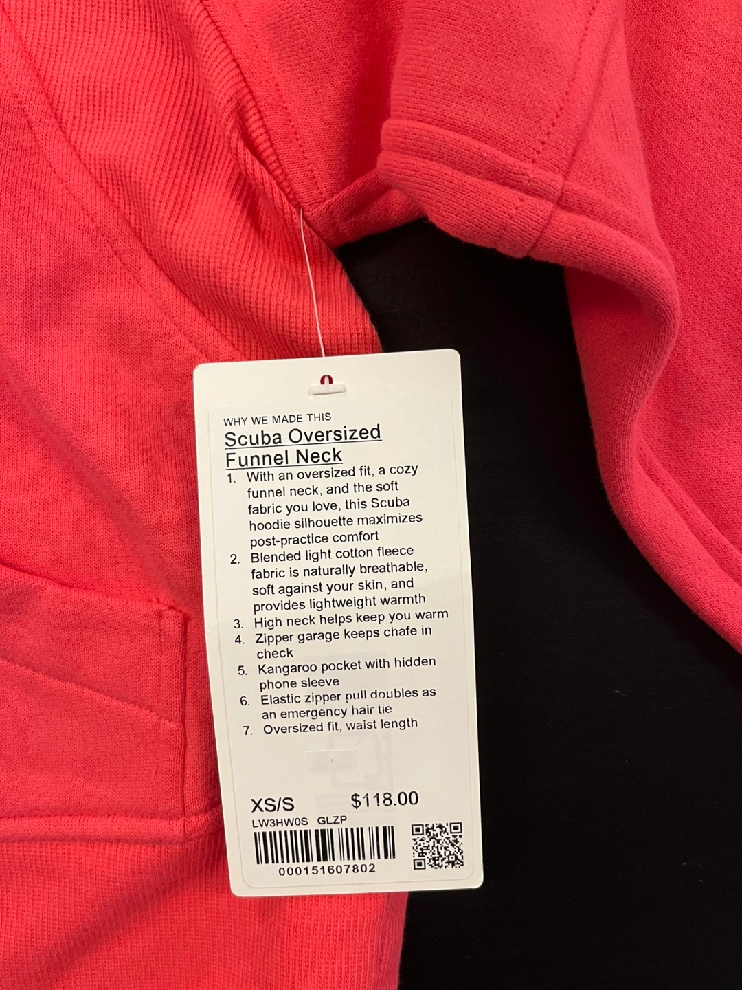 Selling a Lululemon Scuba Oversized Funnel Neck in size XS/S - PINK. BRAND NEW - still with tags on!! Originally bought for $118. Selling for $100.
