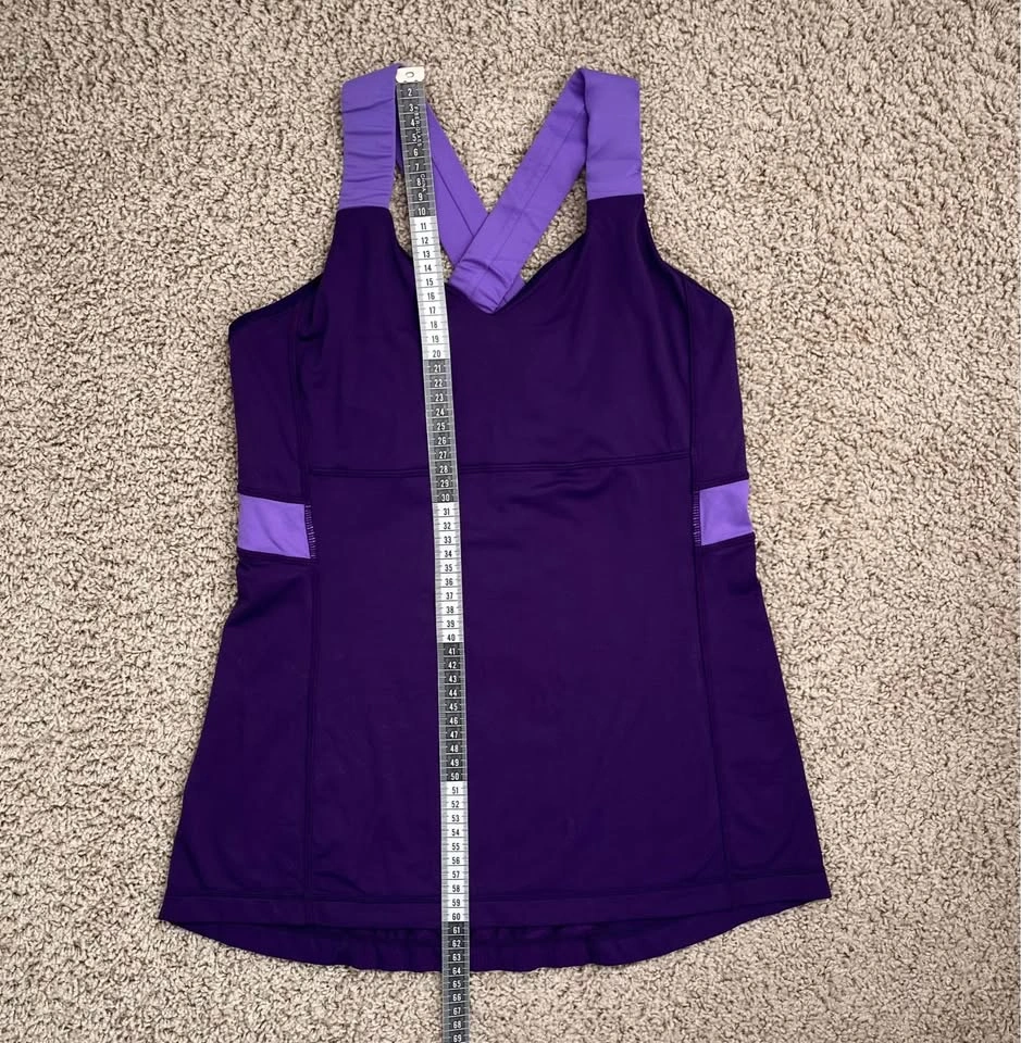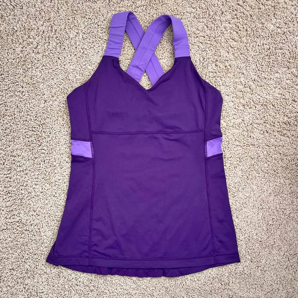 Pump up the jam like it's 1993 in this limit-busting tank. Overall good pre-loved condition with a small snag and some loose stitching on the bottom as shown in the photos. There are no bra inserts. - Made with Luxtreme for maximum moisture-wicking - Anti-stink capabilities built-in shelf bra has pockets for removable cups (*not included*) - Thick racerback straps are supportive and allow for complete freedom of movement just say no to chafing with flat seams support level: medium coverage: medium fit: fitted length: hip Women's Size 8 Porch pick up west Maple Ridge.