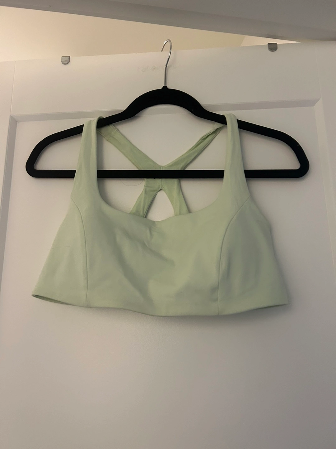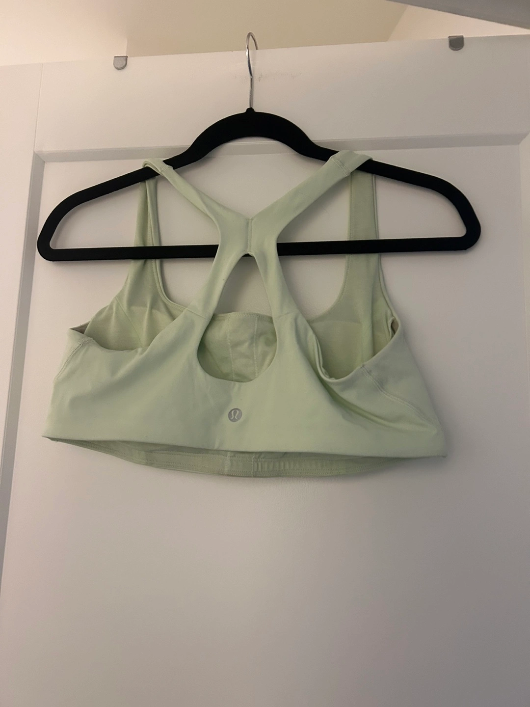 Lululemon sports bra Light green colour. Excellent condition. Great for yoga or everyday wear. Scoop neckline. Cross-back design. Soft and comfortable material.