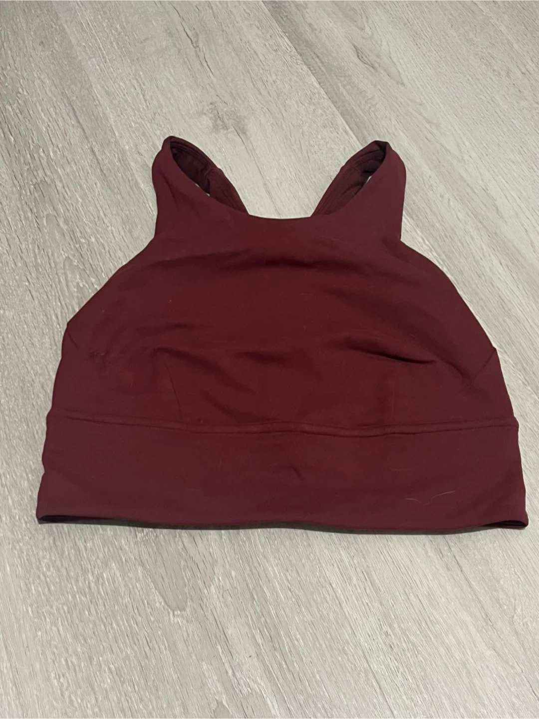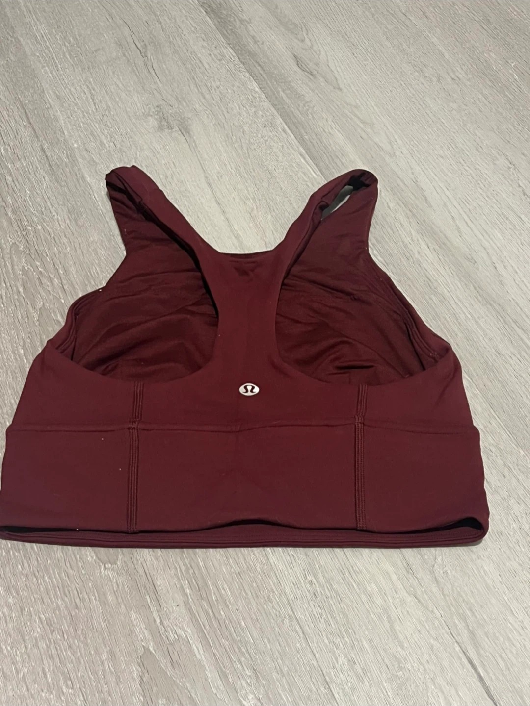A Lululemon sports bra in a lovely maroon colour! It's in great condition and ready for a new home. Perfect for workouts or just lounging around. *Pet friendly, Smoke free home*