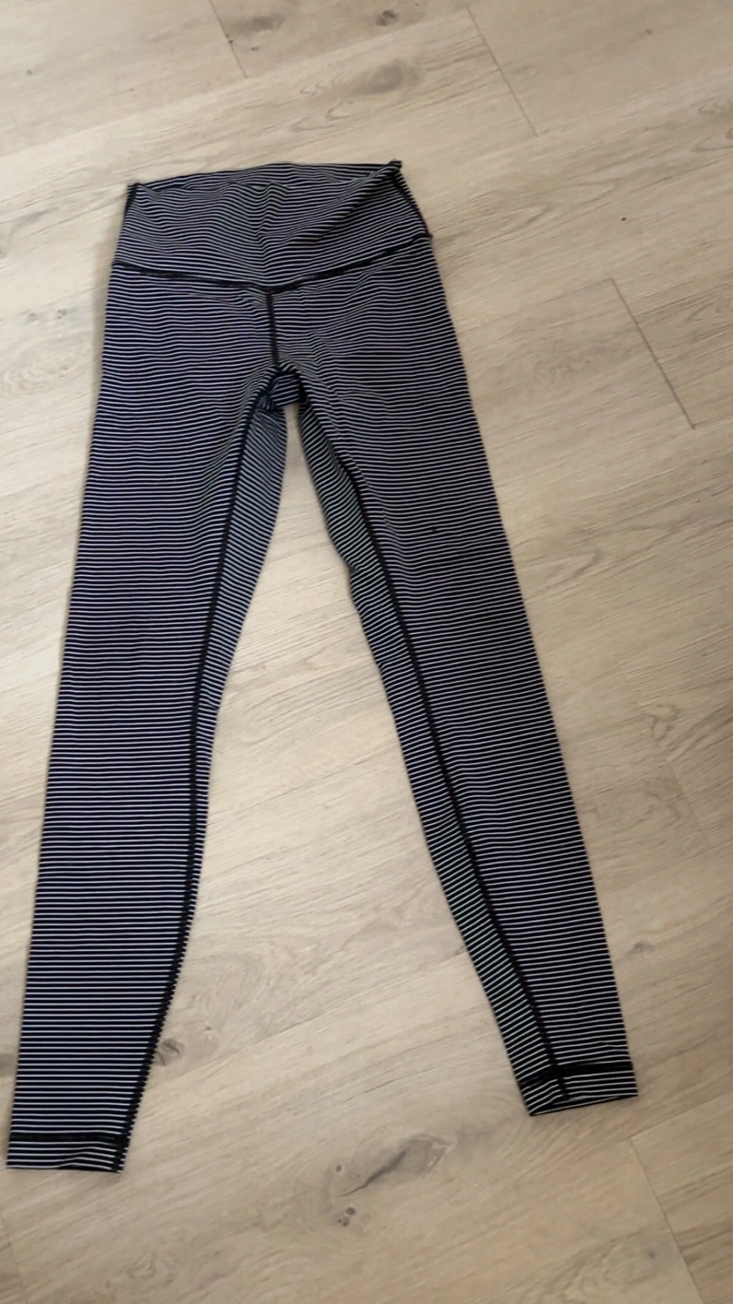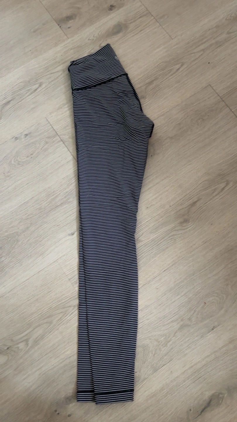 These are a pair of Lululemon leggings in a striped pattern! They're in great shape and ready for a new home. Size 6