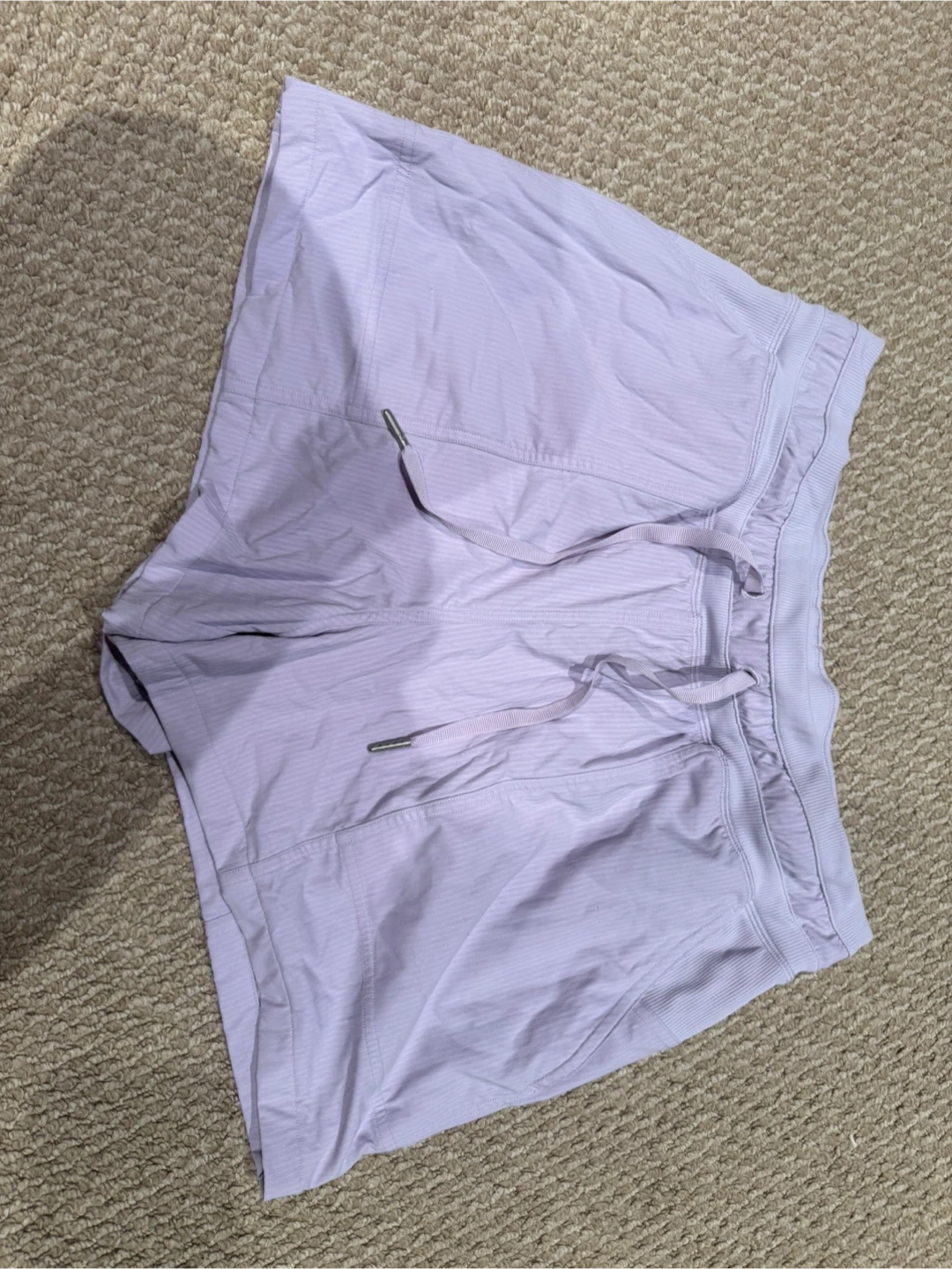 Selling a pair of Lululemon shorts in a light purple colour. They are a size 8 and in great condition. Lululemon studio shorts in 3.5 inch Retails for $78 Selling for $25