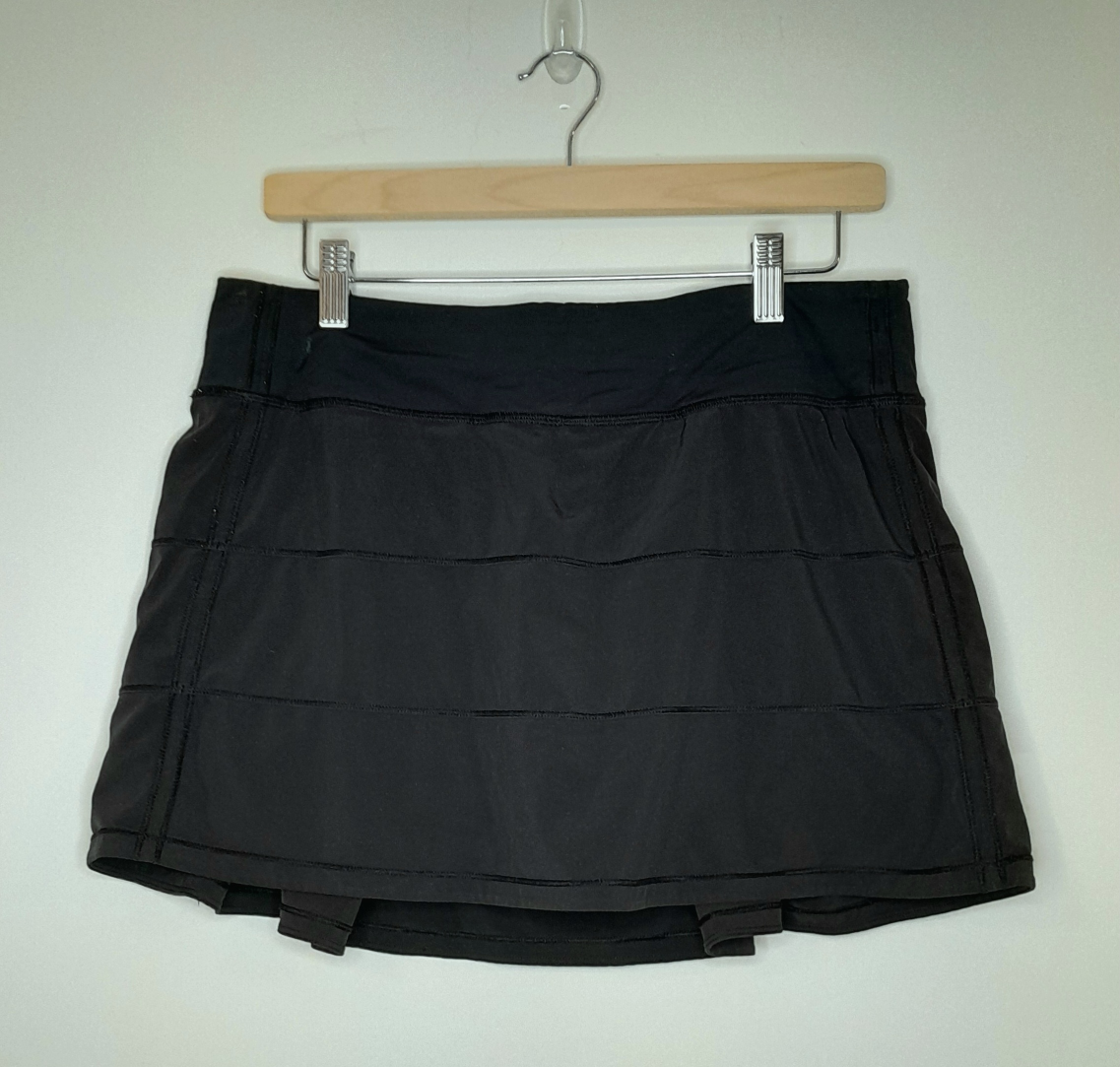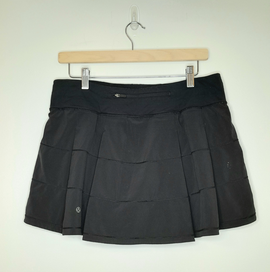 Get your game on with this comfortable, stylish, and functional skort (skirt + short) that has 5 pockets of varying sizes! Includes built-in shorts with one side-pocket each that can fit a large phone, two small pockets on the top rim for small things like keys, rings, etc., and one zipper pocket on the back to secure items in place. Pleats add to an appealing aesthetic. Bought in 2020, and it has two small tears at the seam on the inner thighs (see 3rd photo). These are the two reasons that I'm selling for a lower price compared to the other same type skorts I'm selling.