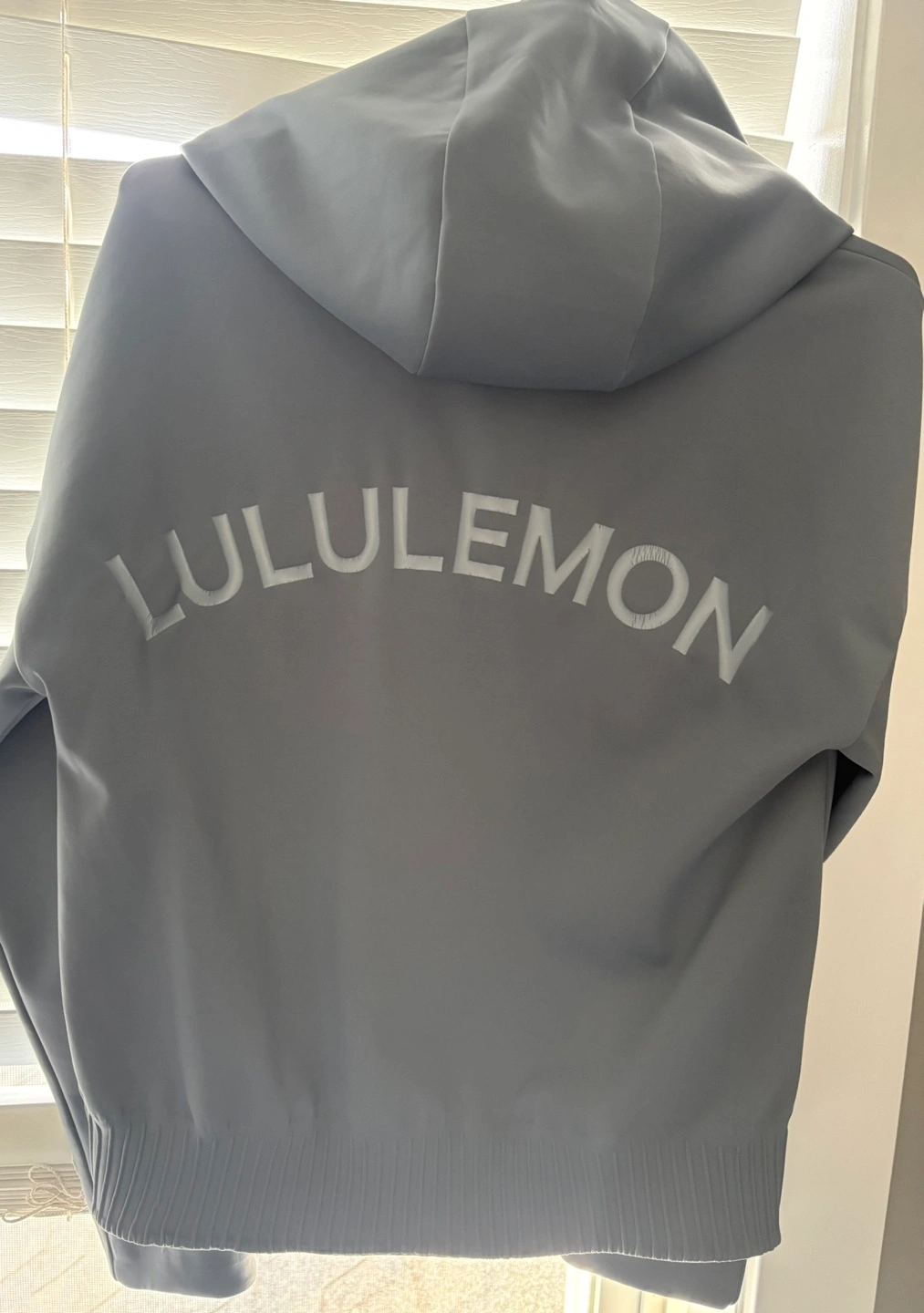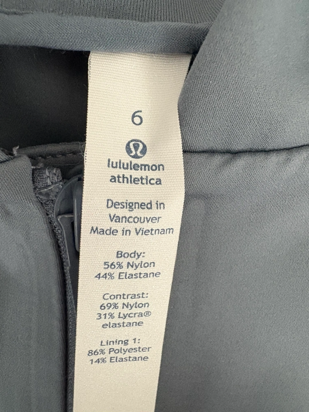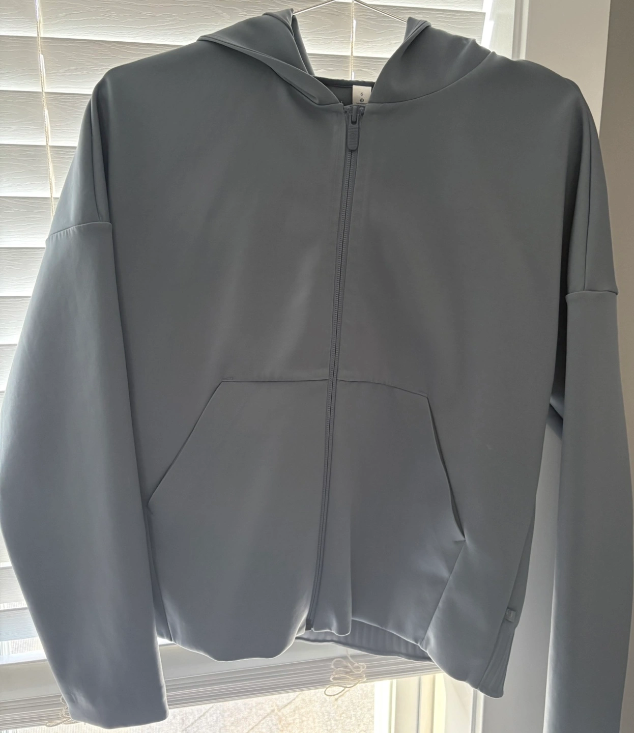 Rare and in new condition Lululemon athletic zip-up hoodie. Size 6. Light blue colour. Features a hood and pockets. Made in Vietnam.