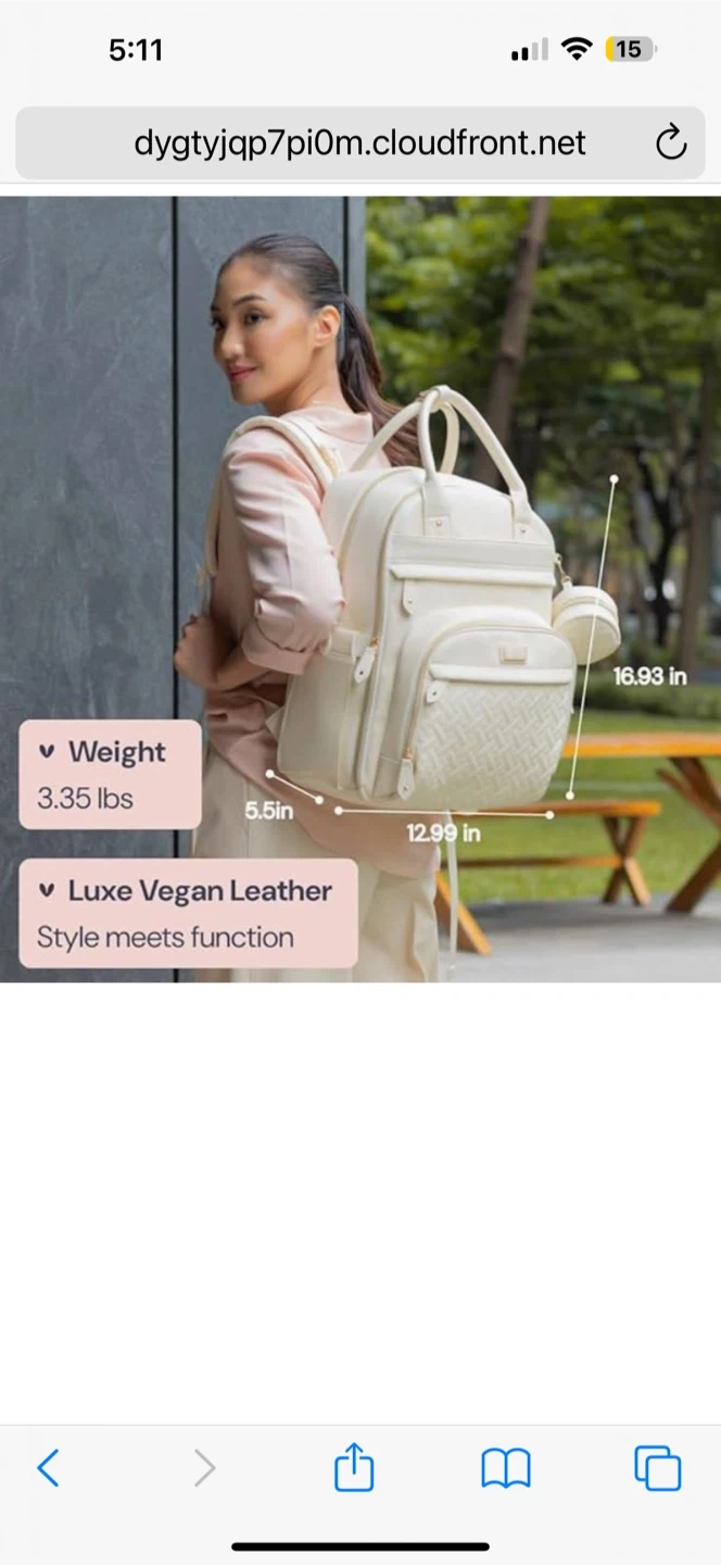 This diaper backpack is made with luxe vegan leather and has a large capacity with 17 pockets to store everything you need! It includes insulated bottle pockets. It weighs 3.35 lbs and measures 16.93 x 5.5 x 12.99 inches. Style meets function with this great bag
