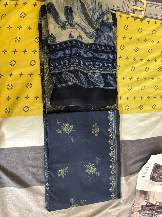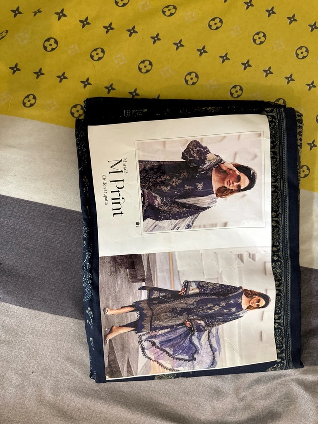 This Unstitched outfit is brand new and has never been worn, featuring a beautiful design with intricate prints and high-quality fabric, perfect for any special occasion or a stylish everyday look. * Type: Unstitched * Print: M Print * Condition: New with tags. If the ad is up, the item is available.