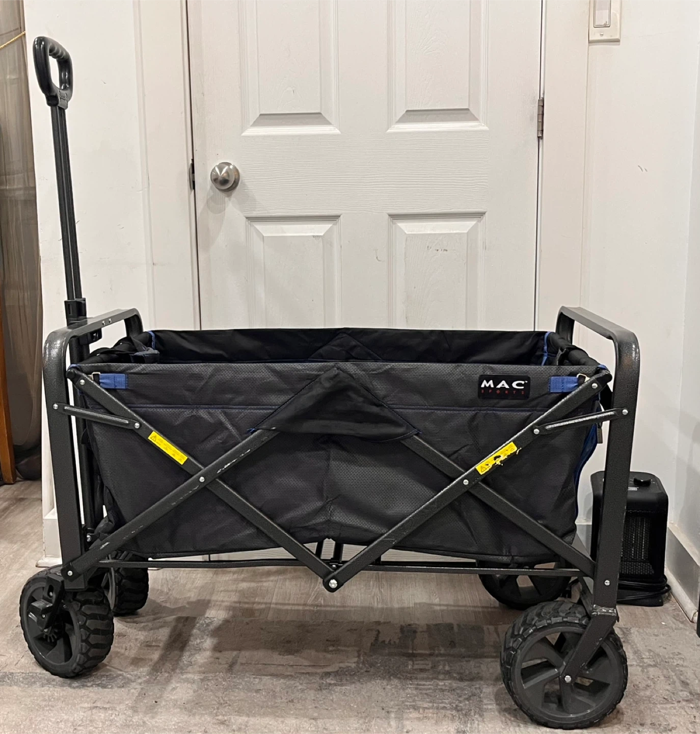 This MAC Sports collapsible folding outdoor utility wagon is perfect for hauling your gear! It's in great shape and ready for your next adventure. The wagon is easy to fold and store, making it a convenient choice for camping, gardening, or trips to the park