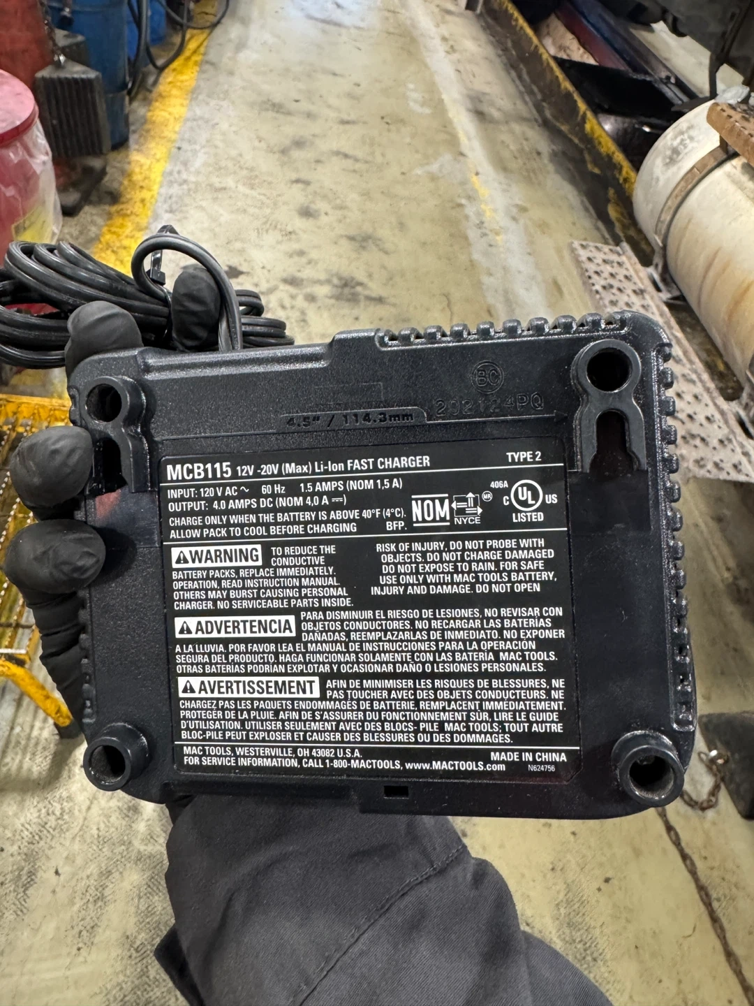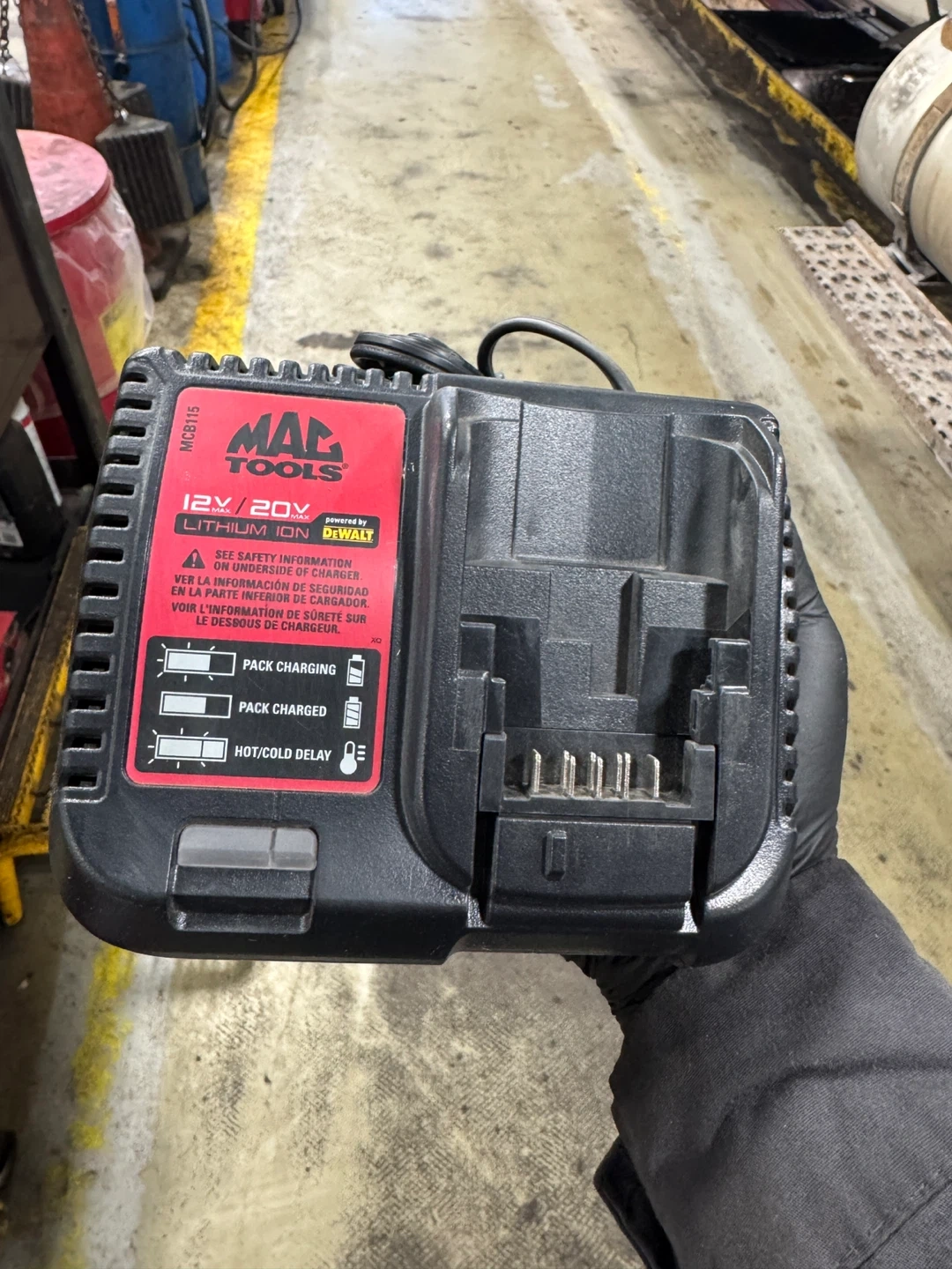 . Selling a MAC TOOLS MCB115 12V-20V (Max) Li-Ion Fast Charger. It's compatible with both 12V and 20V lithium-ion batteries. The charger operates on 120V AC, 50 Hz, 1.5 Amps input, and outputs 4.0 Amps (NOM 4A). Can be used with Dewalt and Mactools battery
