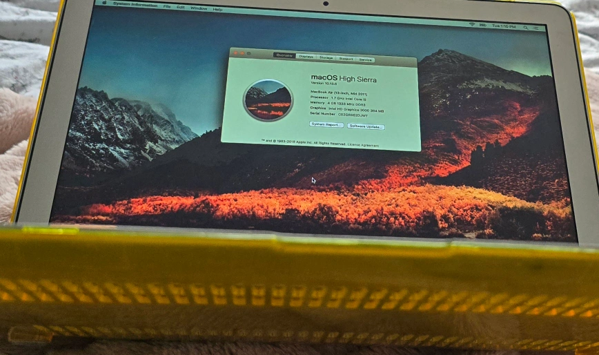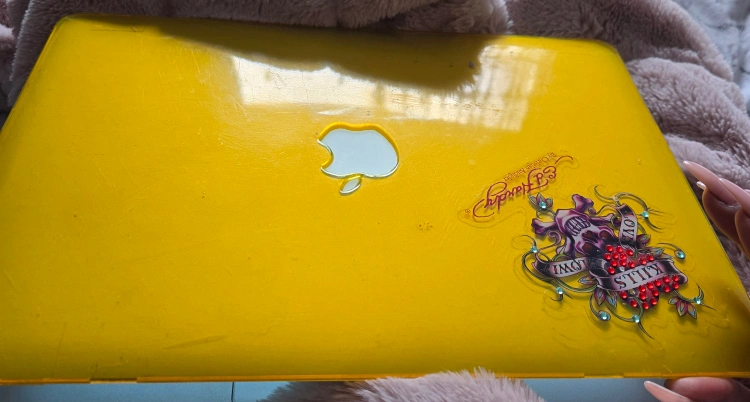 MacBook Air, with a yellow case cover. It includes an Ed Hardy sticker. This is a great laptop to wind down and watch some movies. Case alone was $110 Asking $150 obo pick up in Mississauga