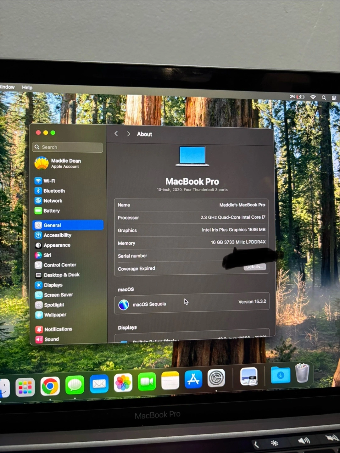 For sale is a space gray MacBook Pro from 2020, featuring a 13-inch display, Intel Core i7 processor, 16GB of memory, and a zippy 512GB SSD! This laptop is in great shape and ready to tackle all your tasks with ease. Here are some more details: * Processor: 2.3 GHz Quad-Core Intel Core i7 * Memory: 16 GB 3733 MHz LPDDR4X * Graphics: Intel Iris Plus Graphics 1536 MB * macOS: Sequoia 15.3.2 Don't let this opportunity pass you by! It's priced to sell, cheaper than you will find in any store! If the ad's still up, it's still available! Pick up by Vickers park.
