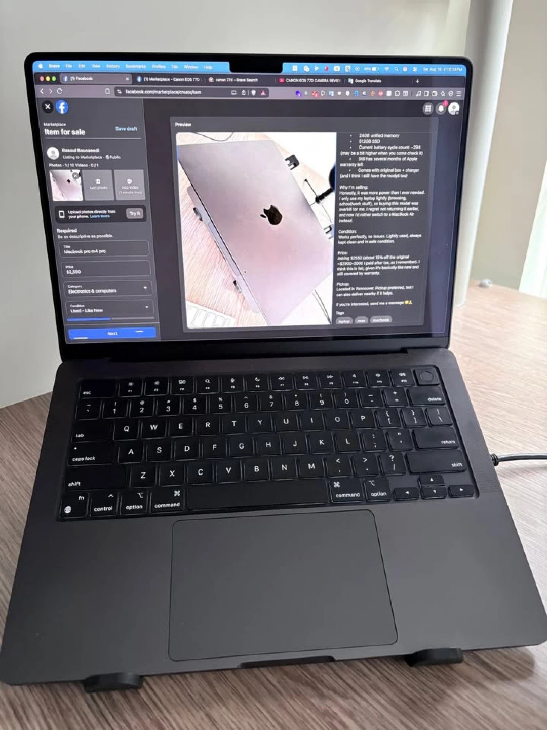Selling my MacBook Pro M4 Pro ASAP, which I bought new from the Apple Store in Coquitlam Center about 8 months ago. Specs are: • 12-core CPU • 24GB unified memory • 512GB SSD • Current battery cycle count: ~294 (may be a bit higher when you come to check it) • Still has several months of Apple warranty left • Comes with original box + charger (and I think I still have the receipt too) Why I’m selling: Honestly, it was more powerful than I ever needed and heavy. I only use my laptop lightly (browsing, school/work stuff), so buying this model was overkill for me. I regret not returning it earlier, and now I’d rather switch to a MacBook Air instead. Condition: Works perfectly, no issues. Lightly used, always kept clean and in safe condition. Price: Asking $2550 (about 15% off the original ~$2900–3000, which I paid after tax, as I remember). I think this is fair, given it’s basically like new and still covered by warranty. Pickup: Located in Vancouver. Pickup preferred, but I can also deliver nearby if it helps. If you’re interested, send me a message 🙂🙏