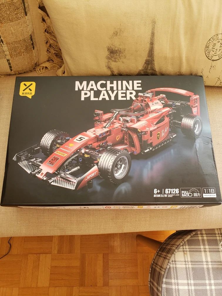 New in box. Red Formula 1 race car building blocks. Detailed model. Quick and powerful rebound. For ages 6+. Scale 1:18. Includes many pieces.