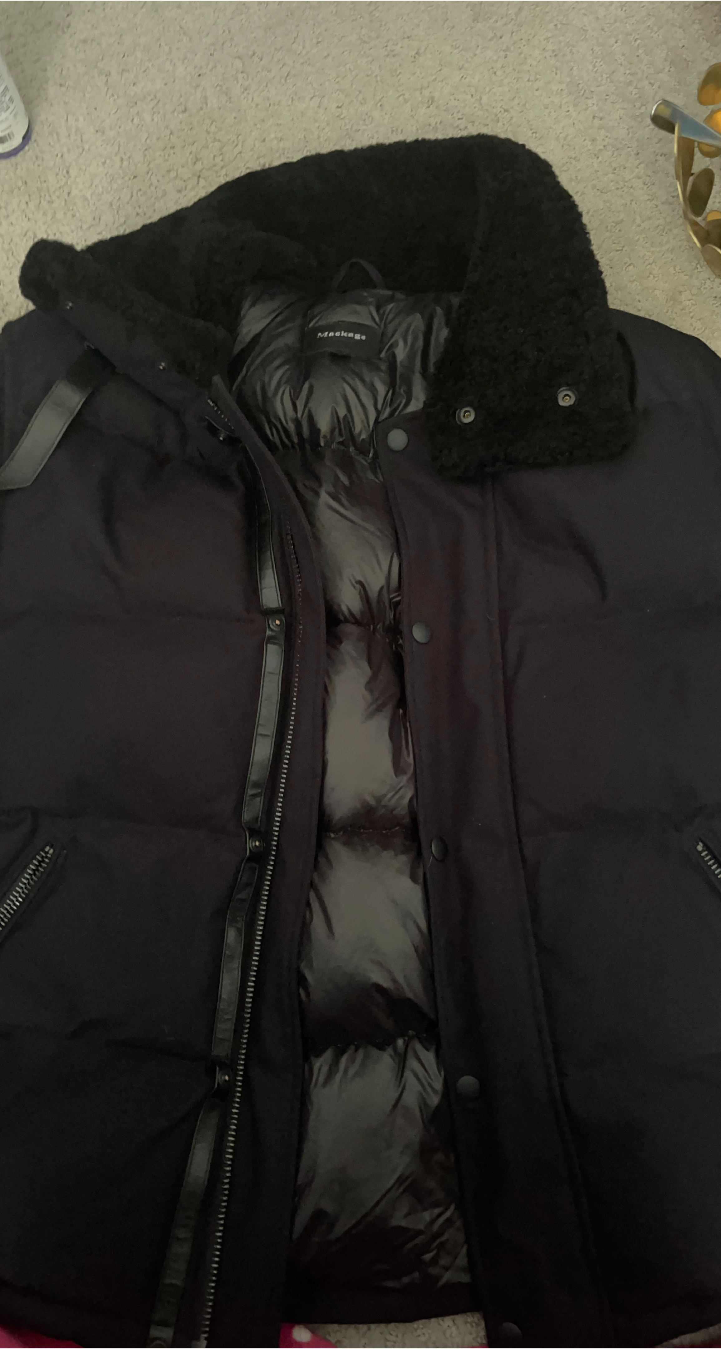 Selling a gently used Mackage down puffer jacket in black. It's in great condition, a bit scruffy on the sleeves but otherwise great!
