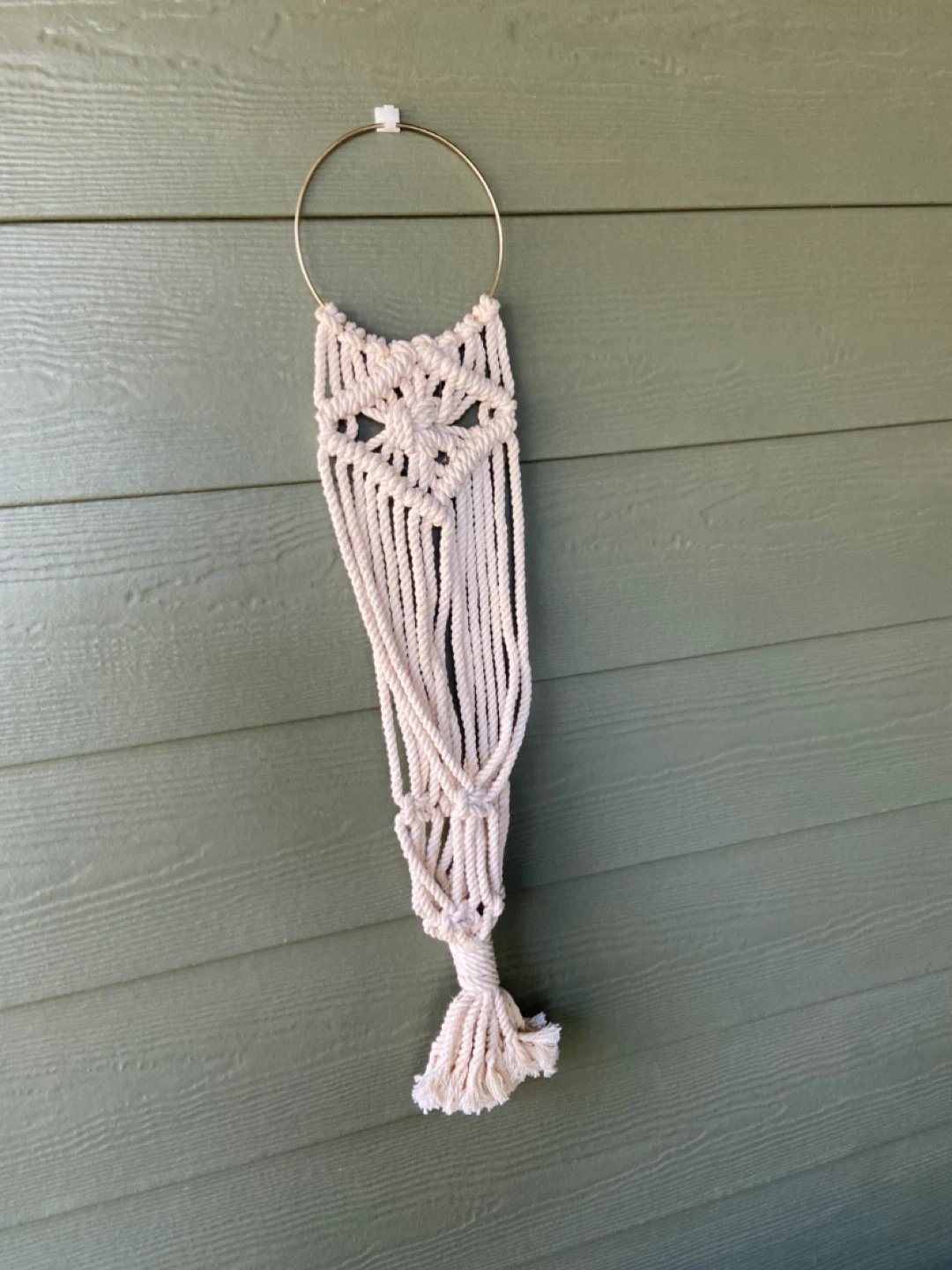 Here's a lovely macrame wall hanging! It's in great condition and would be perfect for adding a touch of boho style to any room