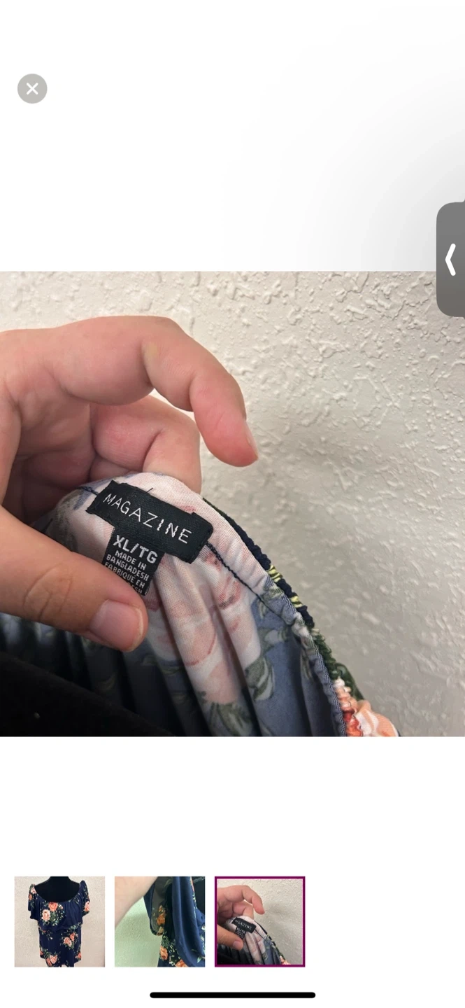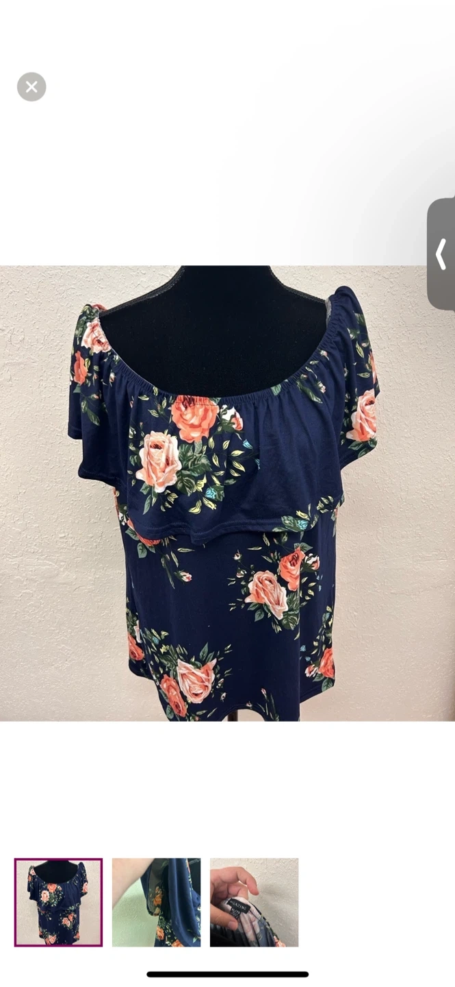 Magazine brand. Off the shoulder ruffle blouse. Blue floral. Size xl. Brand new condition Pit to pit 20” $8 Pickup between kincardine & ripley or I can arrange delivery in port Elgin-Owen sound, walkerton-Durham, wingham-listowel-kw/cambridge, goderich-bayfield, Woodstock & Arthur-Orangeville-Newmarket-Lindsay-Peterborough AREAS.