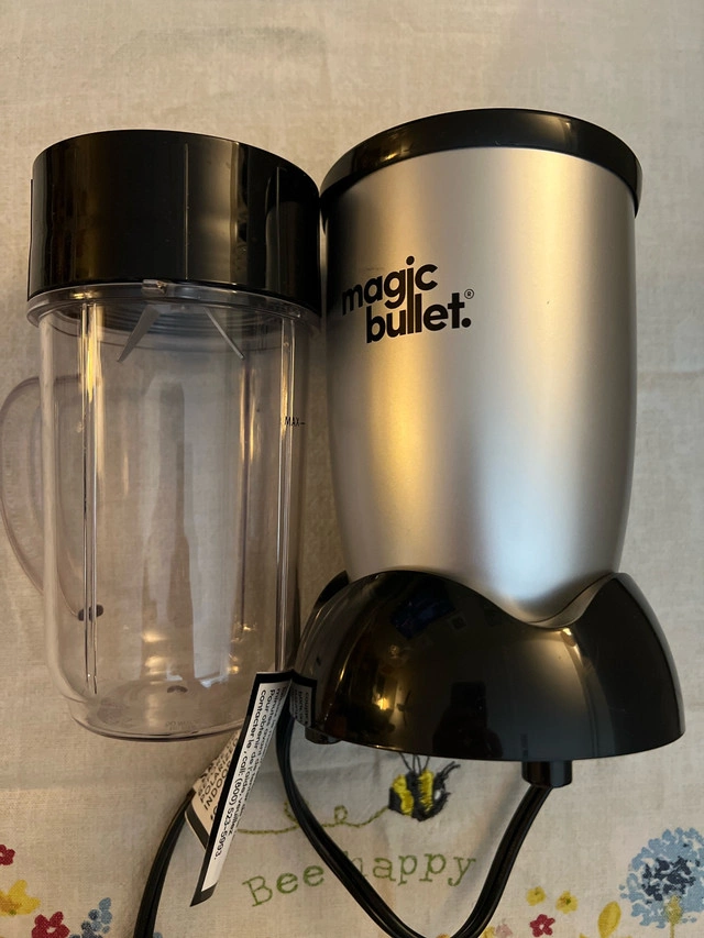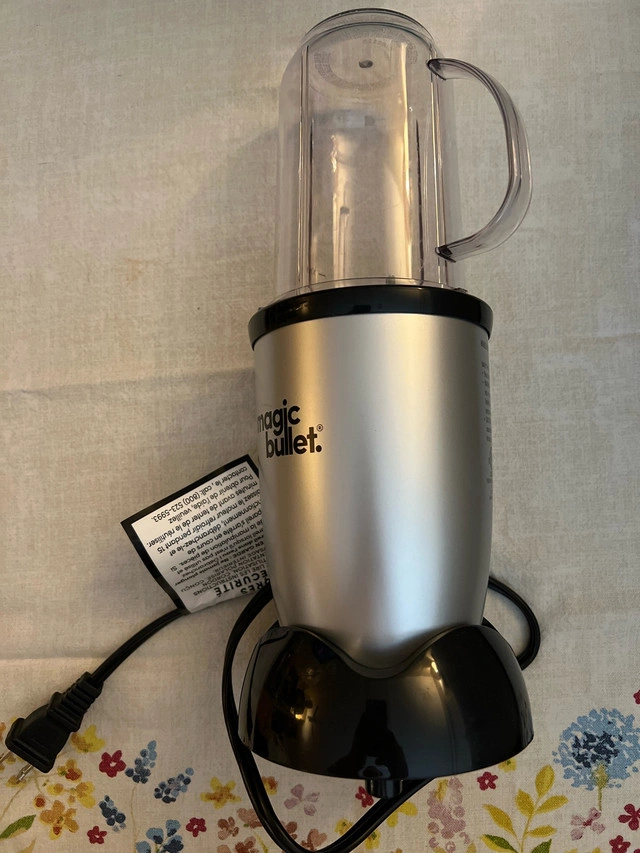Whip up smoothies and sauces in a flash with this Magic Bullet blender! This used kitchen gadget is compact and powerful, perfect for quick and easy food prep. Additional features include: * Compact design * Easy to use and clean * Ideal for smoothies, dips, and sauces If the ad's up, the blender's ready to blend!