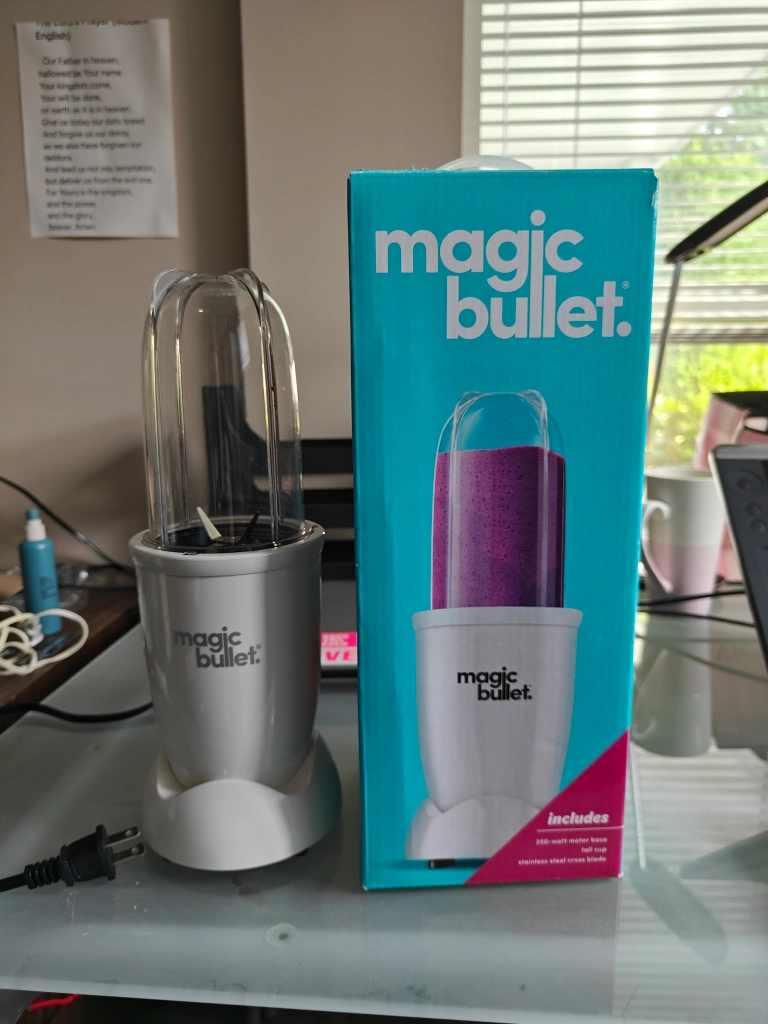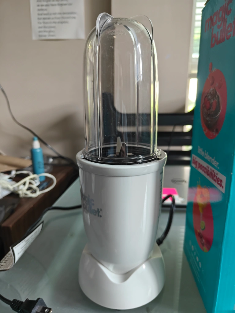 Selling a Magic Bullet blender! It's in great shape and comes with the box. Includes: - 250-watt motor base - Stainless steel cross blade - Tall cup