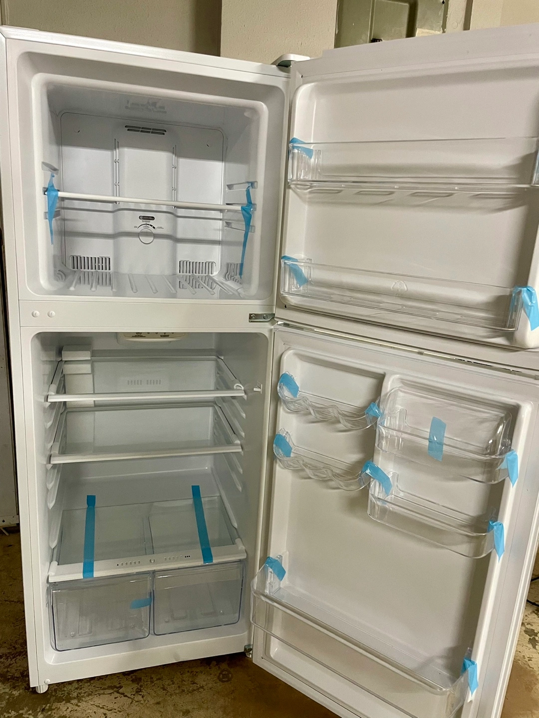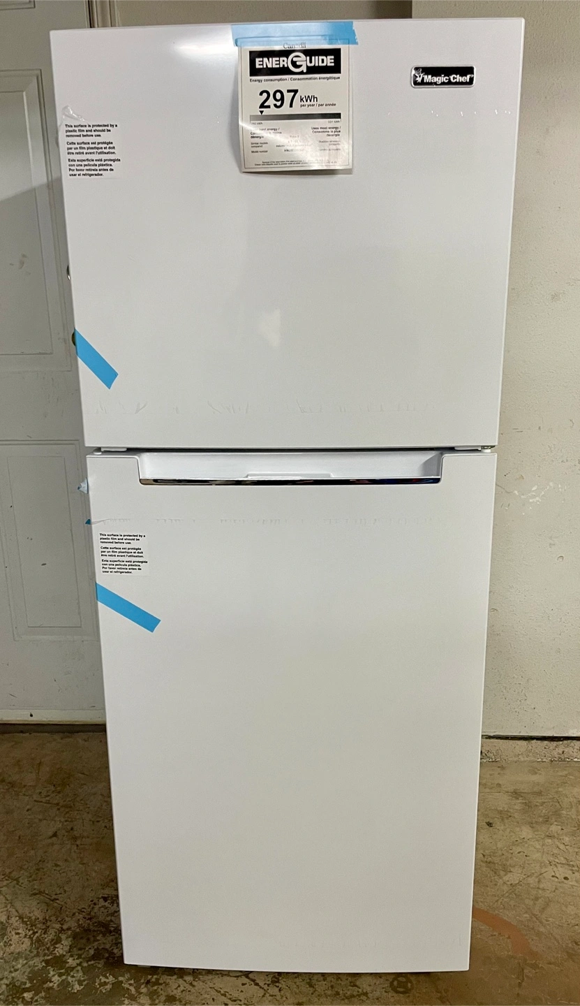 BRAND NEW FRIDGE The Magic Chef 10.1 cu. ft. Compact Refrigerator is the perfect option if you need something in between a mini fridge and a full size fridge. It is great for smaller kitchens, offices, recreation rooms or break rooms. This refrigerator even has a 2.7 cu. ft. freezer on top with a shelf to help organize frozen food. Dimensions : Width 23.6 inch Height 59.4 inch Depth 26 inch Delivery is available for extra charges.