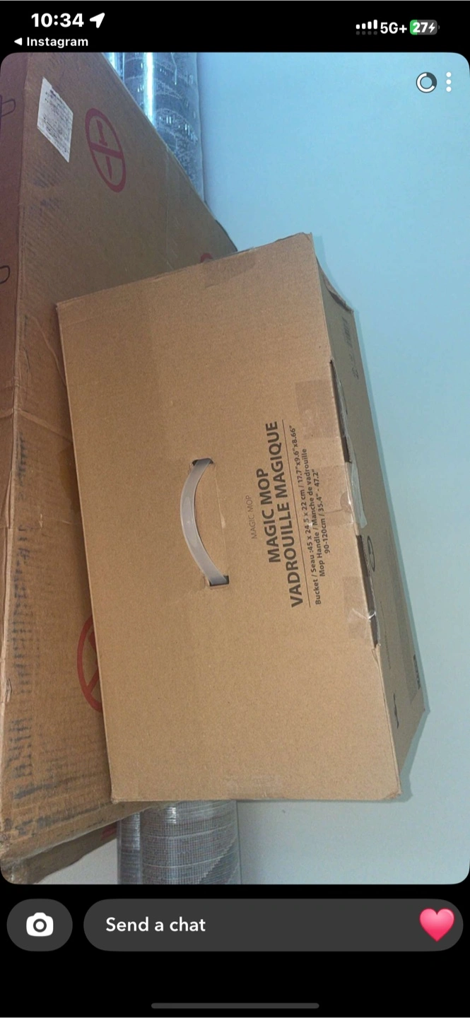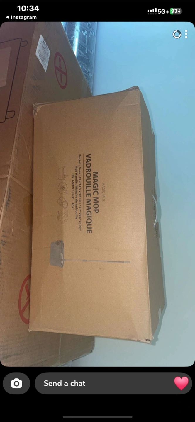 Selling a Magic Mop Vadrouille Magique still in its box! The box includes dimensions of 45 x 21.5 x 22 cm (17.7" x 8.5" x 8.66") for the bucket size and 90-120 cm (35.4" - 47.2") for the mop handle
