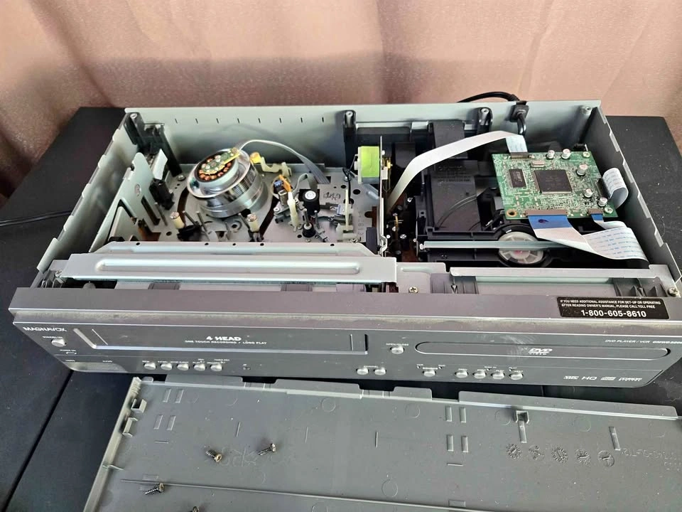 DVD seems to work. When VHS tapes is put in and click play it powers off unsure on the issue. This used Magnavox DVD/VCR combo player is perfect for reliving your favourite VHS tapes and DVDs! It is a 4-Head unit. While untested, it was previously functional. It's ideal for anyone looking to dust off their old movie collection or convert VHS to digital. Here are some of its features: * DVD and VCR playback * 4-Head VCR * Component video output * Composite video out!
