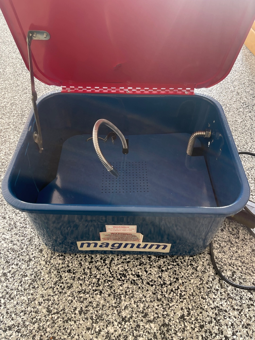 Selling a Magnum parts cleaner. It's in good condition and ready to use for your cleaning needs. Please note the warning label and instructions for safe operation.