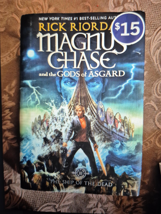 Selling Magnus Chase and the Gods of Asgard: The Ship of the Dead by Rick Riordan great condition hardcover Thickson and Taunton. Pet and smoke free home. No holds. Fastest pickup. No delivery. Note: These books were used in and/or were intended for use in a classroom setting and may have a teacher sticker name or hand written name on the inside front cover.