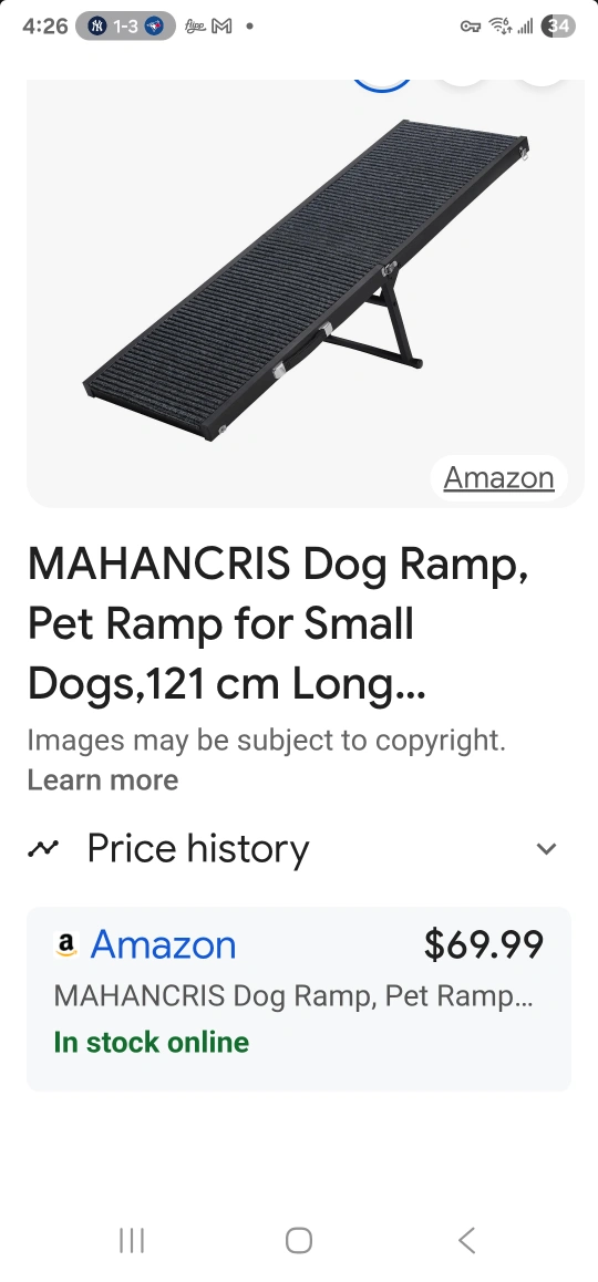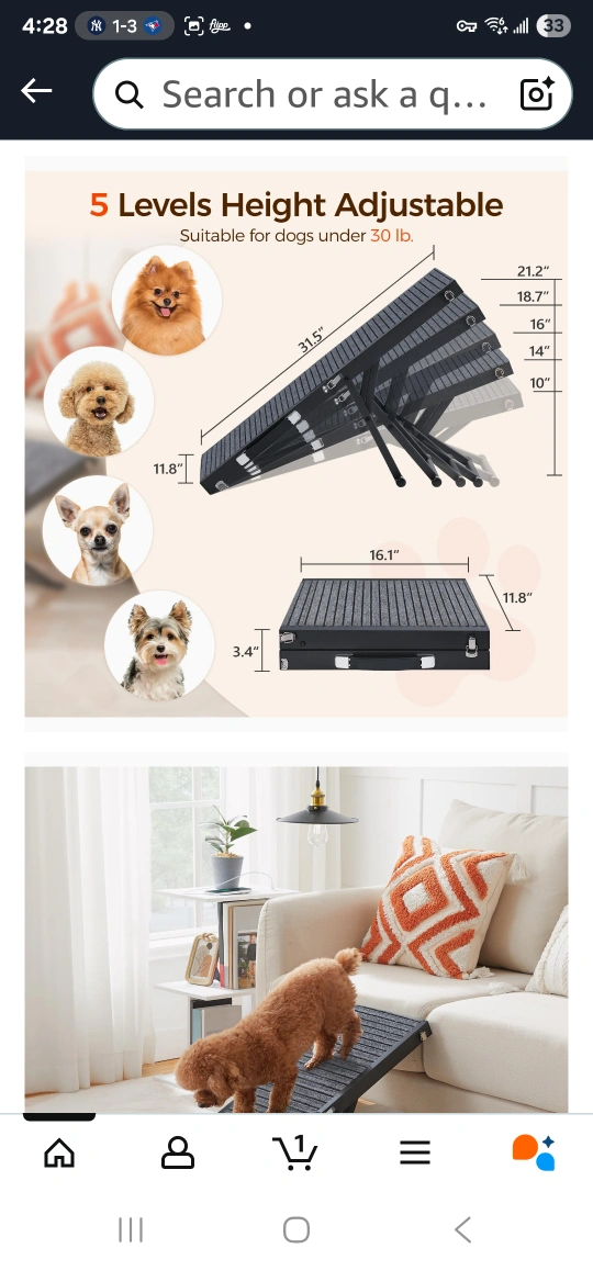 Looking to make things easier for your furry friend? This portable pet ramp is in like new conditio and ready to help your pet get to those hard-to-reach places! Tried once and my little pup didnt like it. Unfortunately no longer have pets and would like gone.