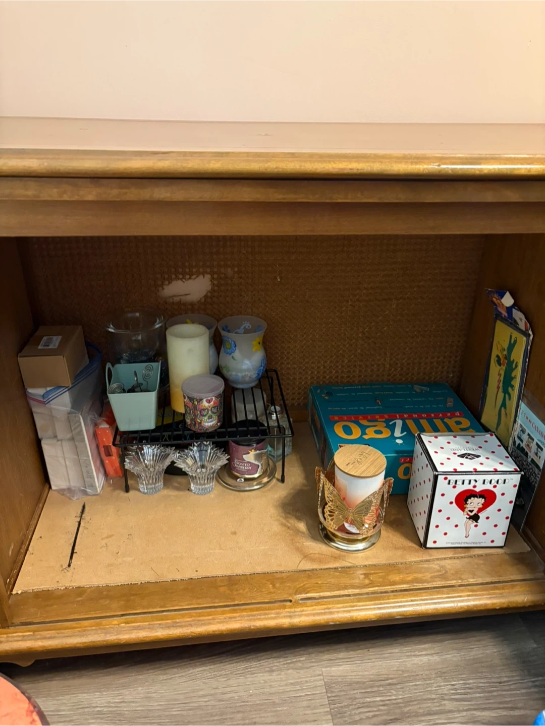 Wooden Storage Cabinet with Floral Panels