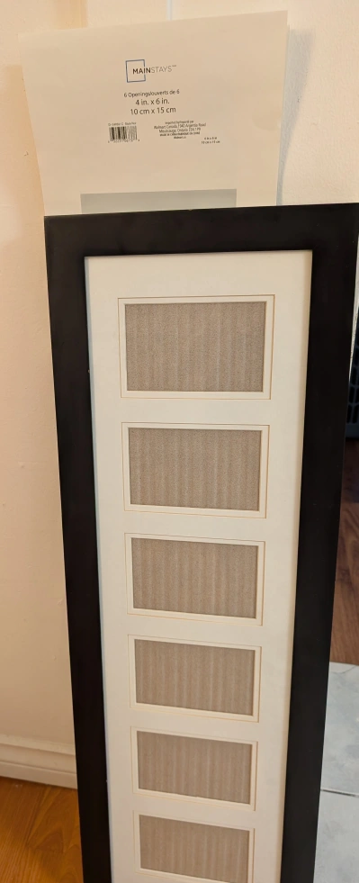 Selling a Mainstays photo collage frame! It features 6 openings for 4x6 inch photos (or 10cm x 15cm). Perfect for displaying your favourite memories!