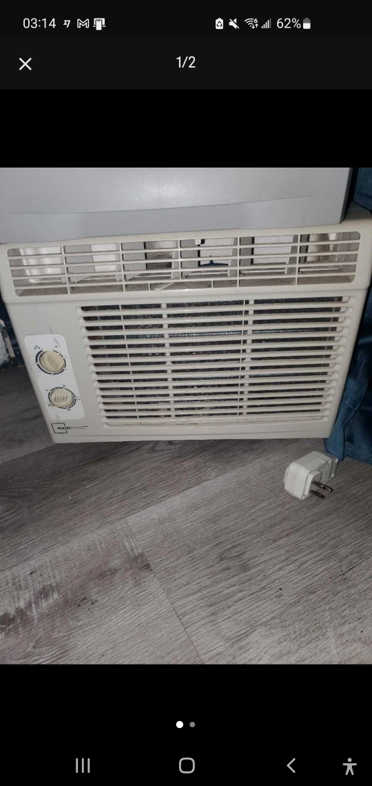 Keep cool this summer with this Mainstays 5000 BTU window air conditioner. It's perfect for cooling a small room and making those hot days more bearable. As you can see it's been used quite a bit, but functions as expected. I like to think this air conditioner is like a quirky character in a summer movie – a bit rough around the edges, but always there to save the day when the heat is on. Speaking of being available, if you're reading this, it's still up for grabs!Keep cool this summer with this Mainstays 5000 BTU window air conditioner. It's perfect for cooling a small room and making those hot days more bearable. As you can see it's been used quite a bit, but functions as expected. I like to think this air conditioner is like a quirky character in a summer movie – a bit rough around the edges, but always there to save the day when the heat is on. Speaking of being available, if you're reading this, it's still up for grabs!