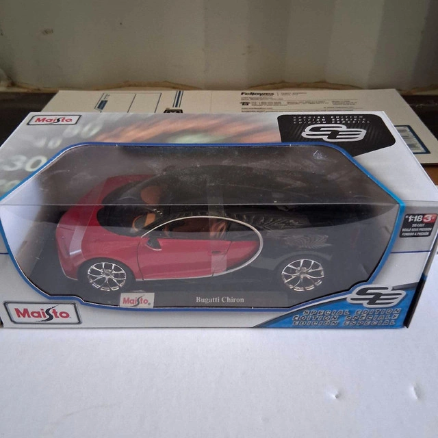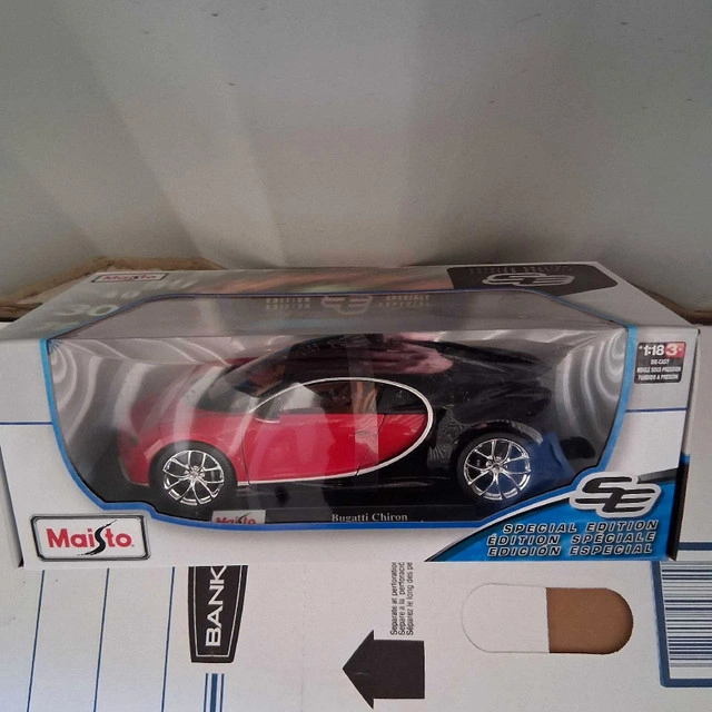 Check out this Maisto 1:18 scale diecast Bugatti Chiron Special Edition, brand new in its original packaging! The sleek design and attention to detail make it a must-have for any car enthusiast or collector. Key Features: * Brand: Maisto * Scale: 1:18 * Model: Bugatti Chiron Special Edition * Condition: New in box Add this beauty to your collection today! Don't miss out—if the ad is up, it's available. Grab it before it zooms away!