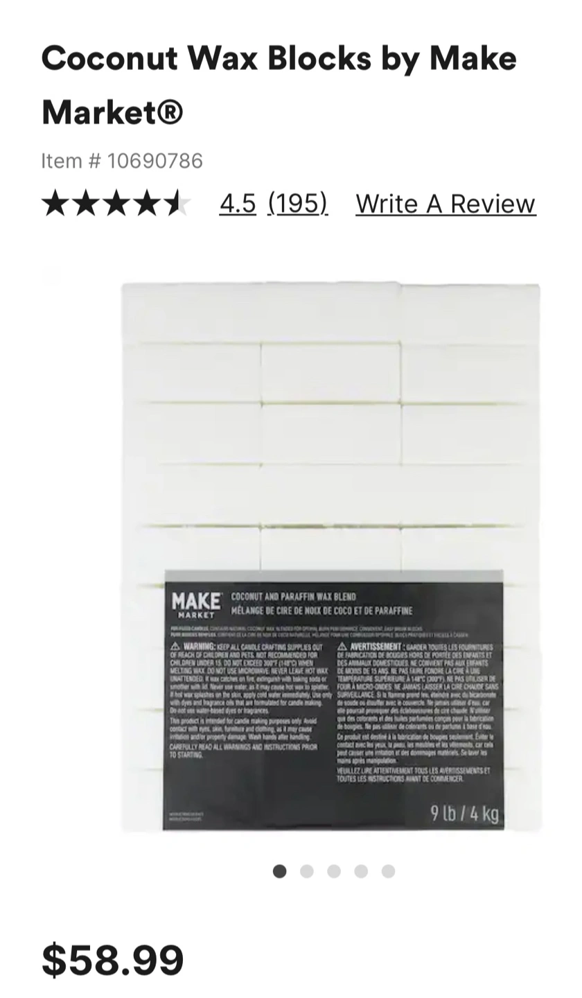 Selling a 9lb/4kg block of Make Market coconut and paraffin wax blend! It's perfect for candle making and originally retailed for $58.99