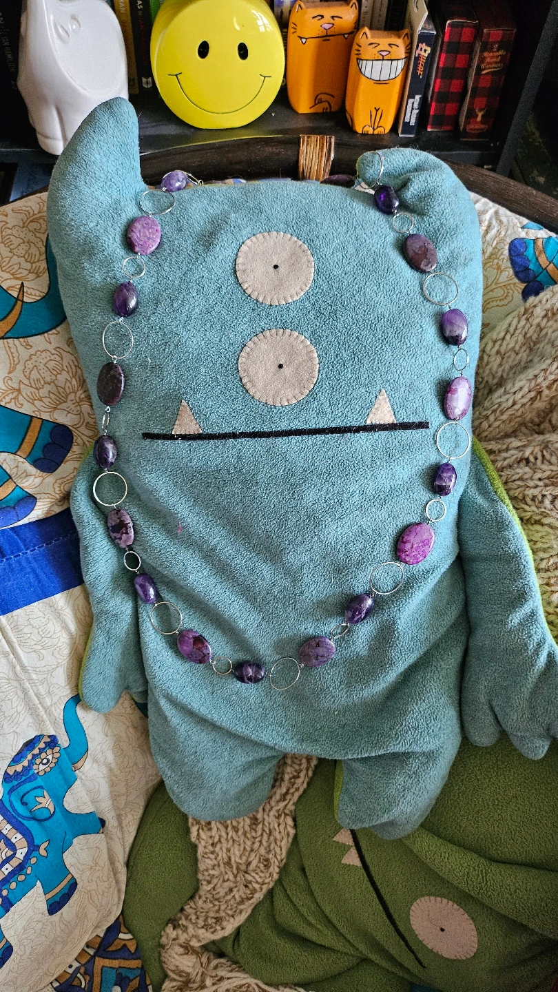 Amethyst necklace. Silver ring chain. Long (waist length). Unique design. Available for pick-up near Oakwood Village.
