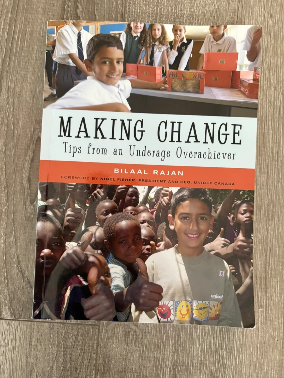 Selling the book 'Making Change: Tips from an Underage Overachiever' by Bilaal Rajan!
