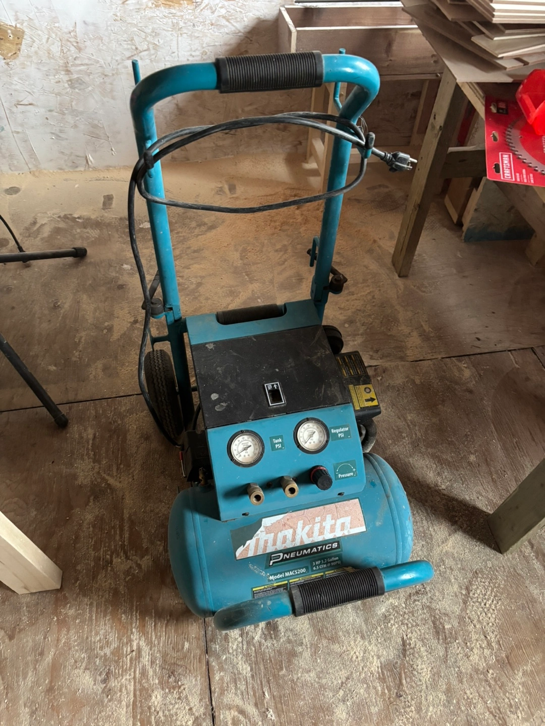 Too big for my wood working shop. I got a small one for my Brad nailer. These go for $600-$700 in store but as you can see in the picture is it’s collecting dust and I need the space so I’m looking for $100 I’m looking for a quick sell