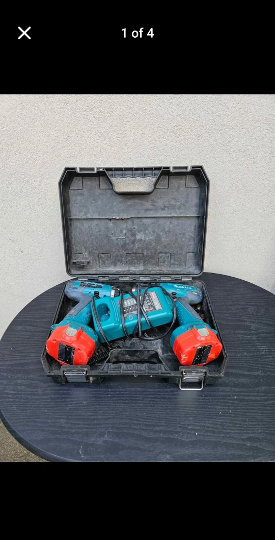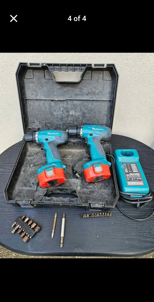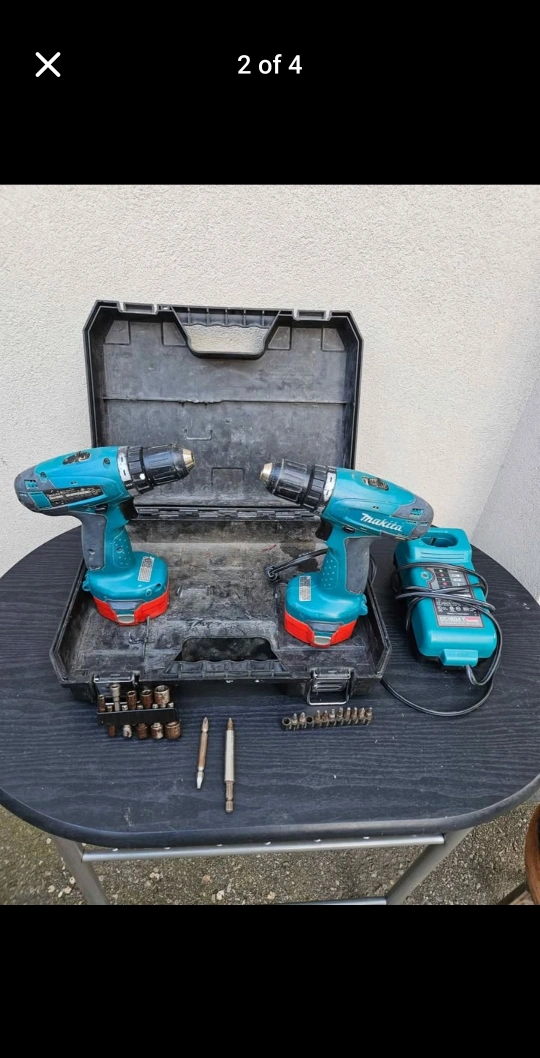 Selling a used Makita cordless drill set. It comes with two drills, a charger, various drill bits, and a carrying case. Good for various projects around the house or on the job site