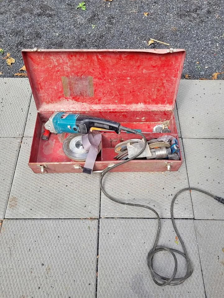 Corded Makita grinder with metal case and several grinding and cutting attachments. Let me know if you're interested!
