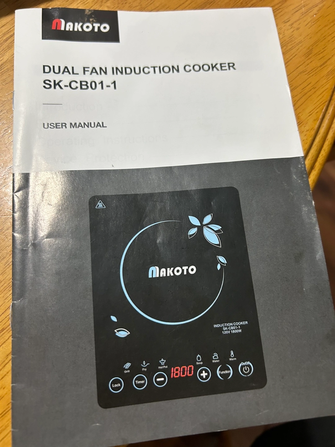 Selling a Makoto dual fan induction cooker, model SK-CB01-1. It's in great shape and comes with the user manual