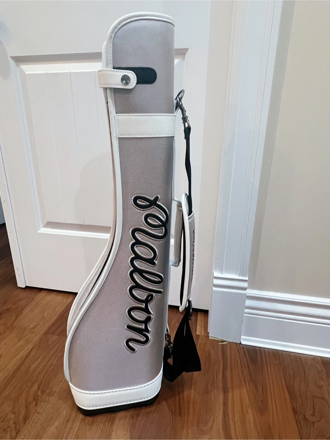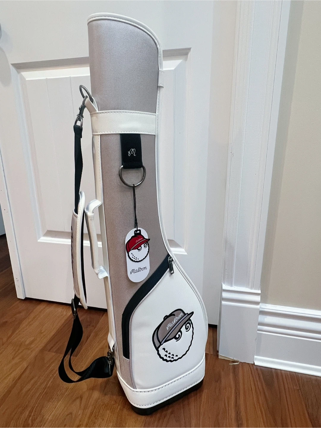 Looking to sell my Malbon golf stand bag! It's in great shape and ready for the course. The bag is a stylish grey and white colour. Perfect for carrying your clubs in style!