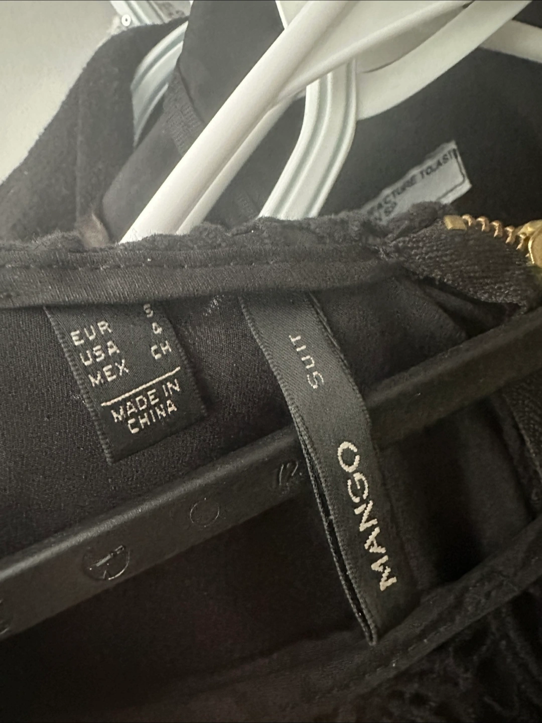 Straight-cut lace dress with a rounded neck, cap sleeves, belt with metal contrasted details and zip fastening on the back.