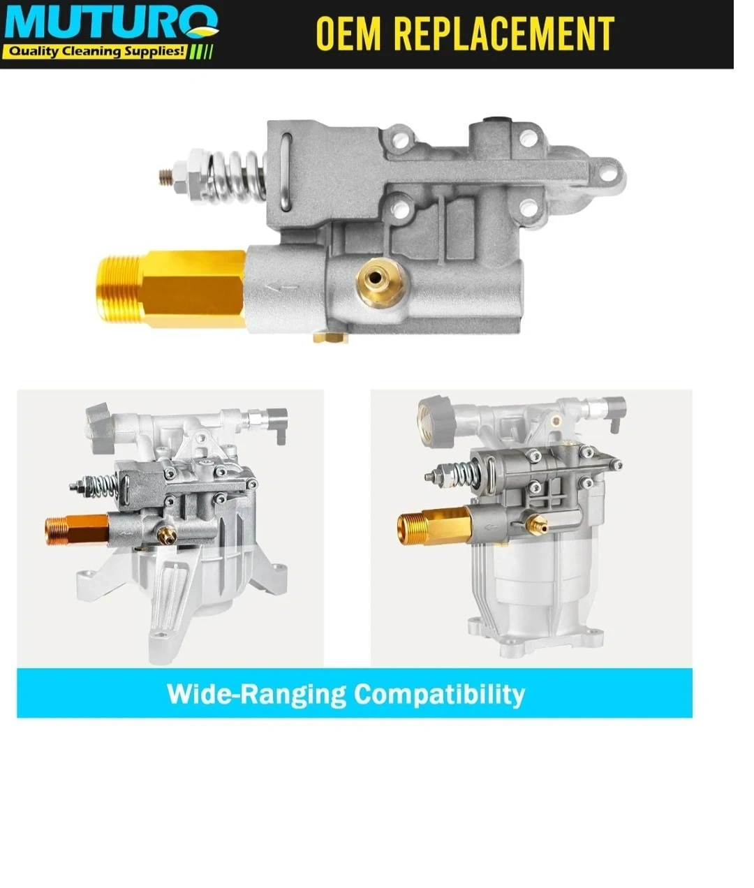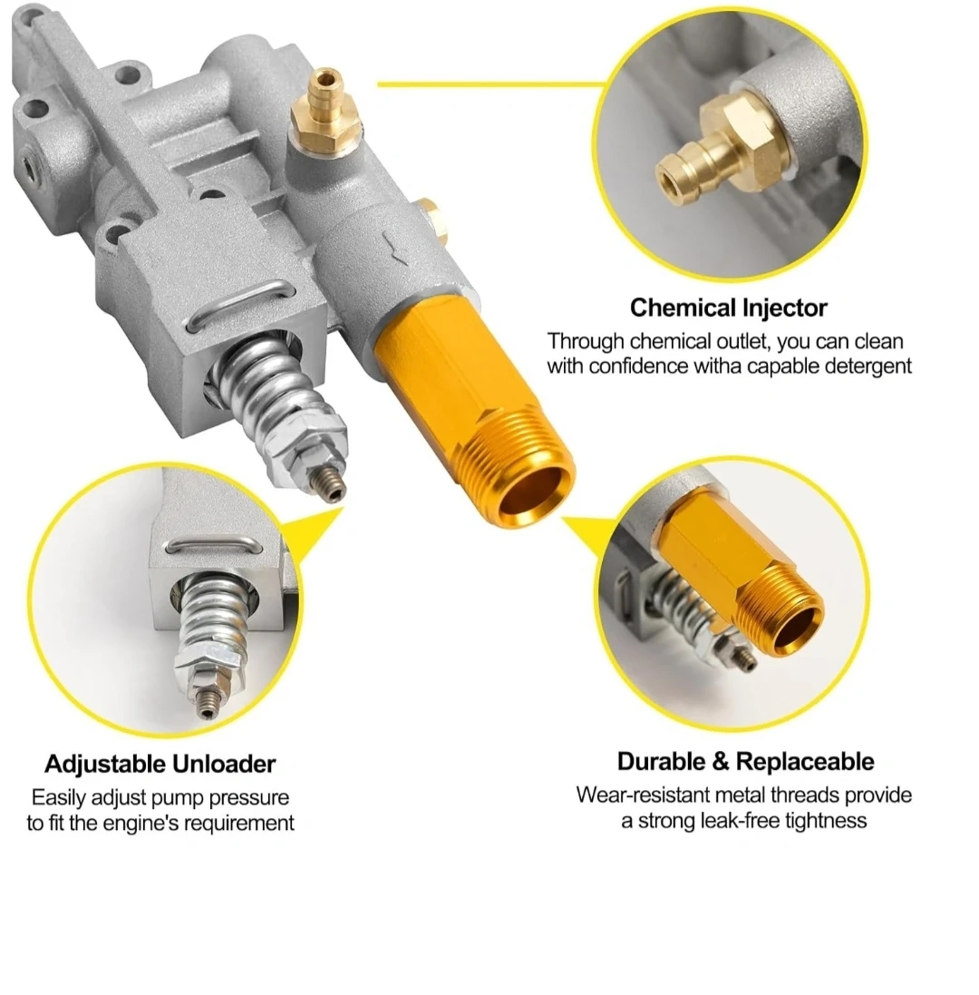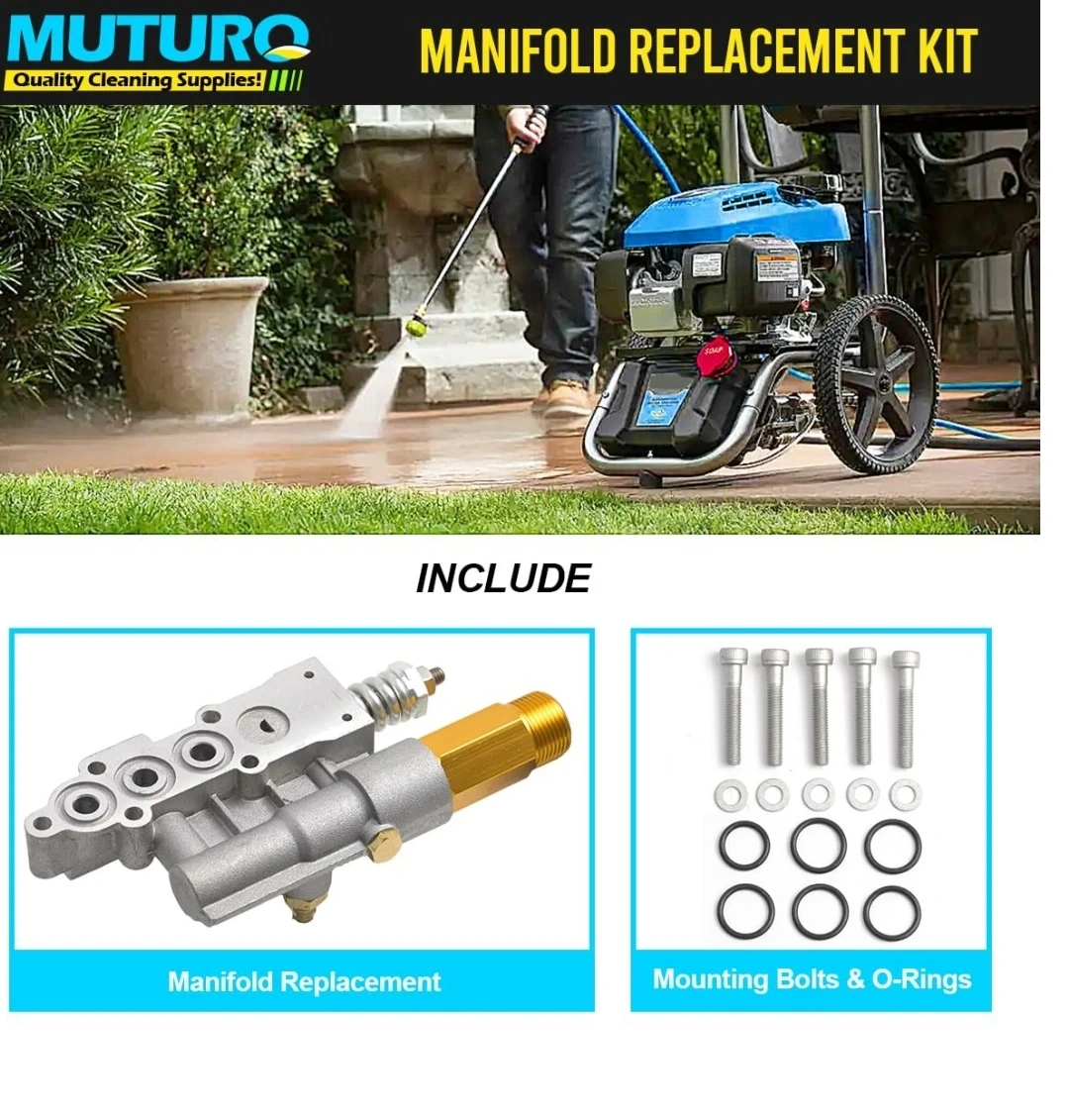Product details Top highlights BrandMUTURQ ColorSilver MaterialStainless Steel StyleAbove Ground Power SourceElectric Item Weight0.45 Kilograms Quality Replacement Part: The Manifold Replacement Kit is a high-quality replacement part designed specifically for your pressure washer pump. With its durable construction, it ensures superior performance and longevity, saving you from frequent replacements. Comprehensive Kit: The Complete Outlet Manifold Replacement Kit includes essential components such as the unloader, integrated soap injection, high-pressure hose outlet, and mounting hardware. Reliable Connection: The manifold in this kit is fitted with an M22 high-pressure outlet, ensuring a secure and reliable connection. Easy Installation & Compatibility: This manifold replacement kit is designed for easy installation, allowing you to quickly replace the manifold on your pressure washer pump. Before ordering, simply check the pump model number to ensure compatibility, and you'll have the right part in no time. Cost-Effective Solution: By choosing this manifold replacement kit, you can save both time and money. Instead of purchasing a brand new pressure washer pump, repair your existing one with these high-quality components. Pick up Markham and Ellesmere. Check my other listings too. Thanks
