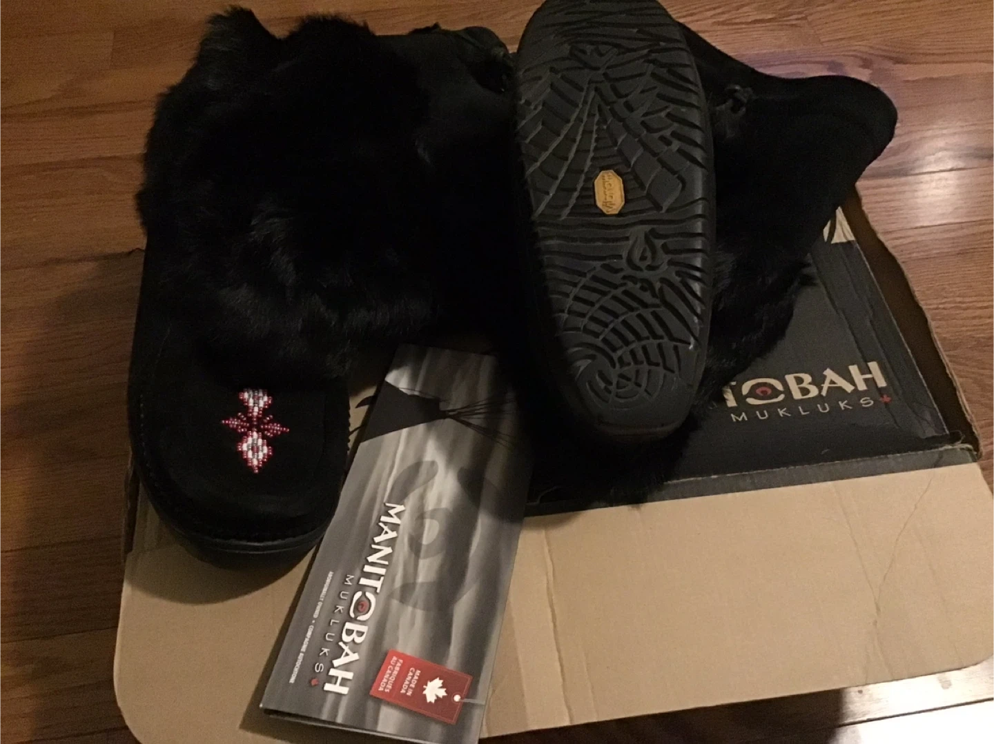 Selling a pair of Manitobah Mukluks Tundra boots in black, size 9..They come with the original box. These are perfect for keeping your feet warm and stylish during the colder months!
