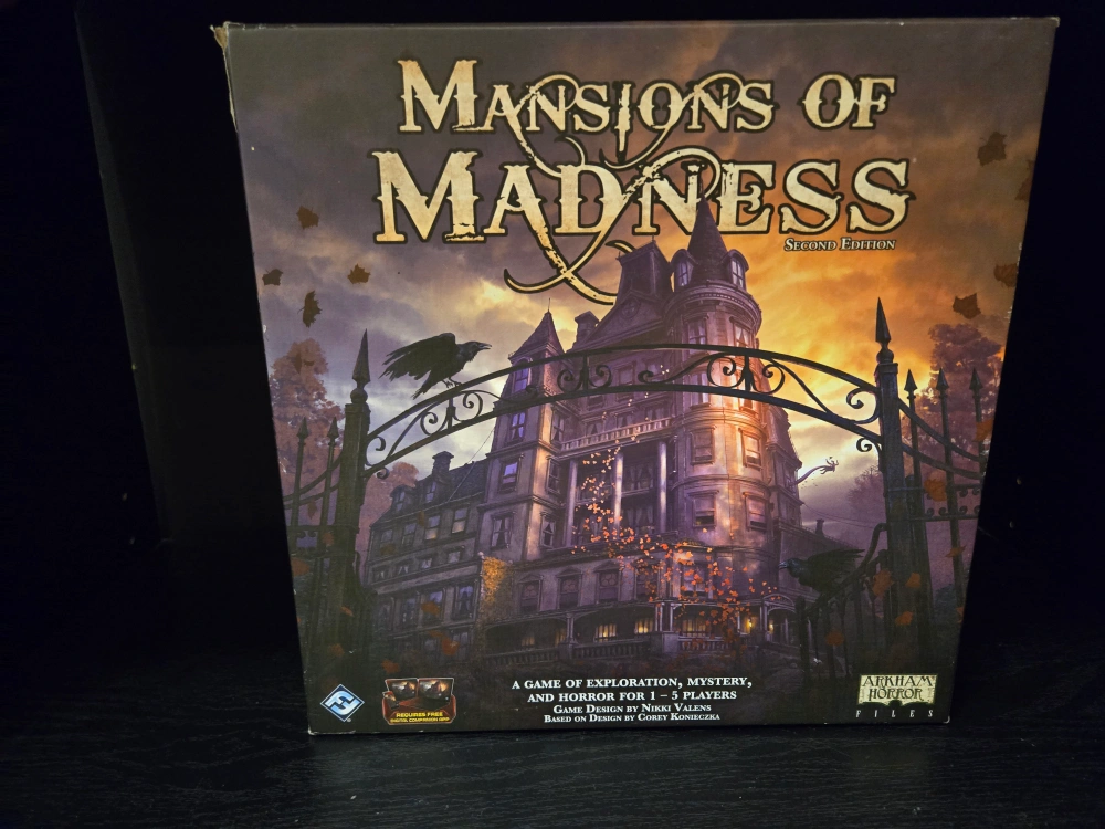 Selling Mansions of Madness, Second Edition board game! It's a game of exploration, mystery, and horror for 1-5 players. Game design by Nikki Valens, based on design by Corey Konieczka