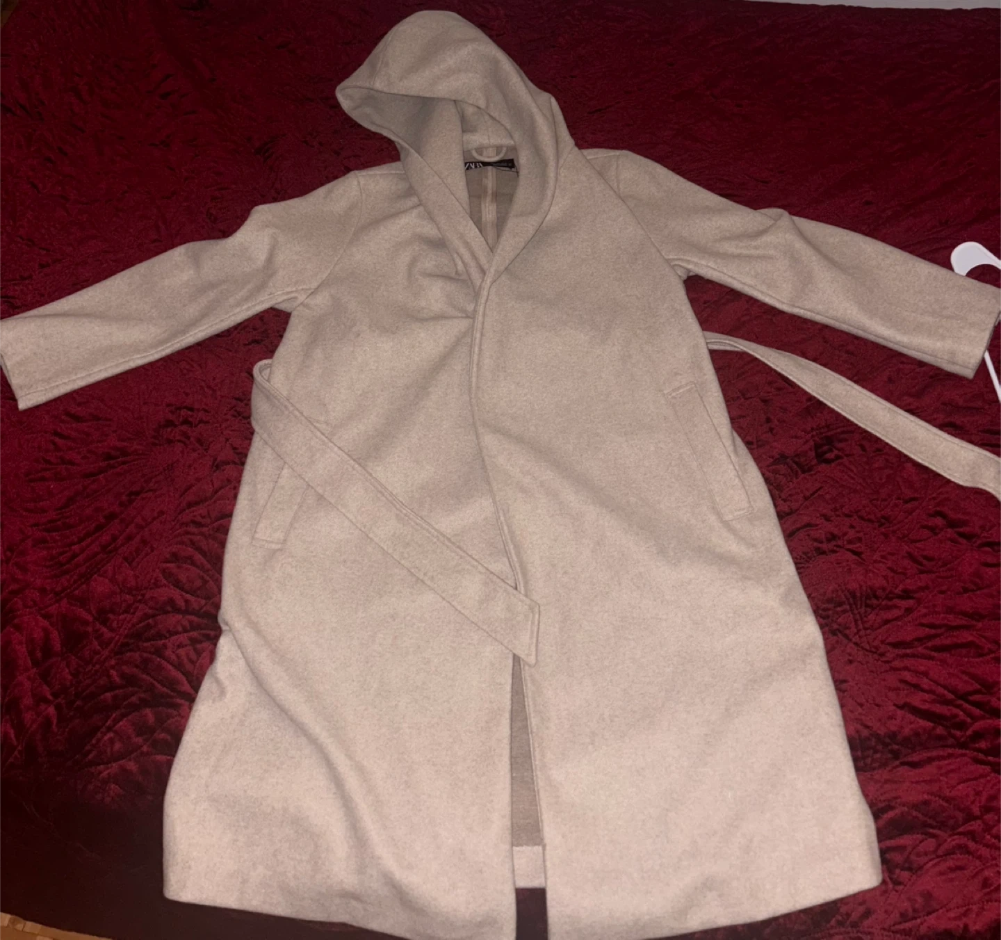 Je vends un manteau Zara de couleur beige. Il est de taille L et en bonne condition. Parfait pour l'automne! Portée 1fois