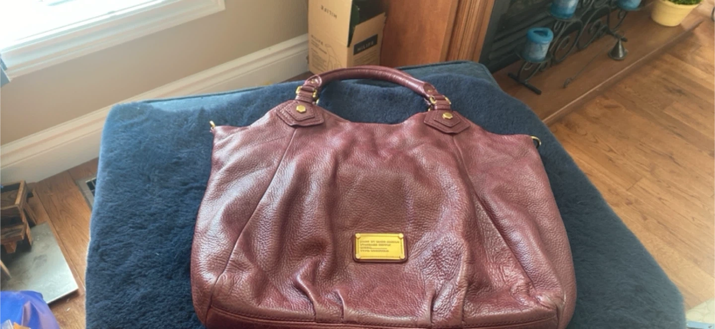 Selling a Marc by Marc Jacobs tote bag in a lovely burgundy colour! It's made of leather and has a unique black and white patterned interior lining, it also has the long strap so can be used as a cross body bag. There's also a matching wallet that complements the bag nicely. It's in great condition and ready for a new home!