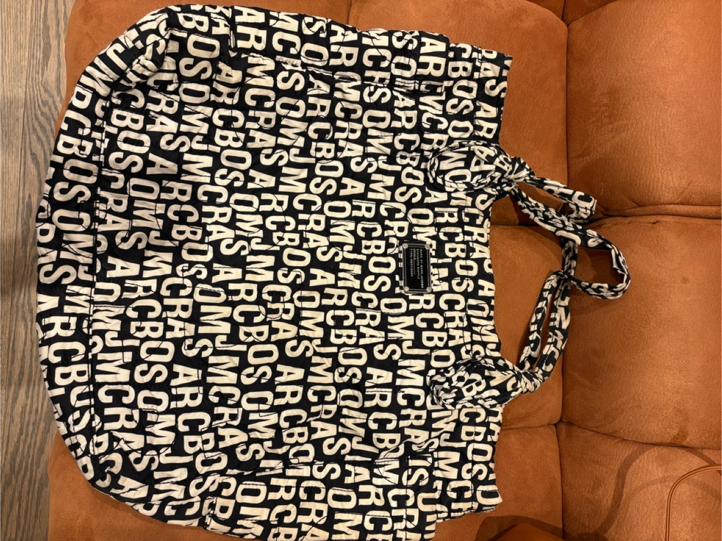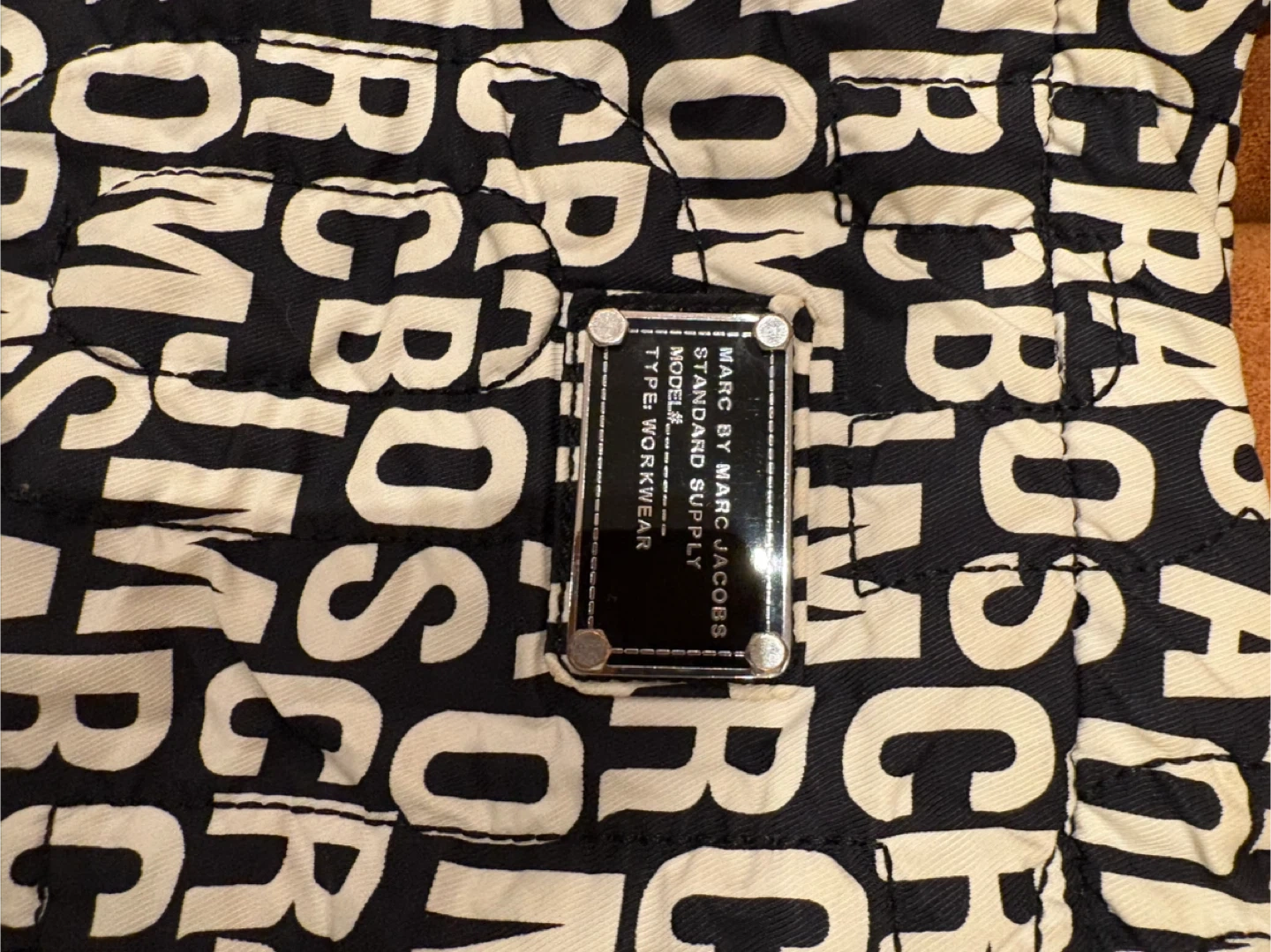a Marc by Marc Jacobs tote bag. It's a Standard Supply Workwear model. The bag features an all-over print of the brand's name.
