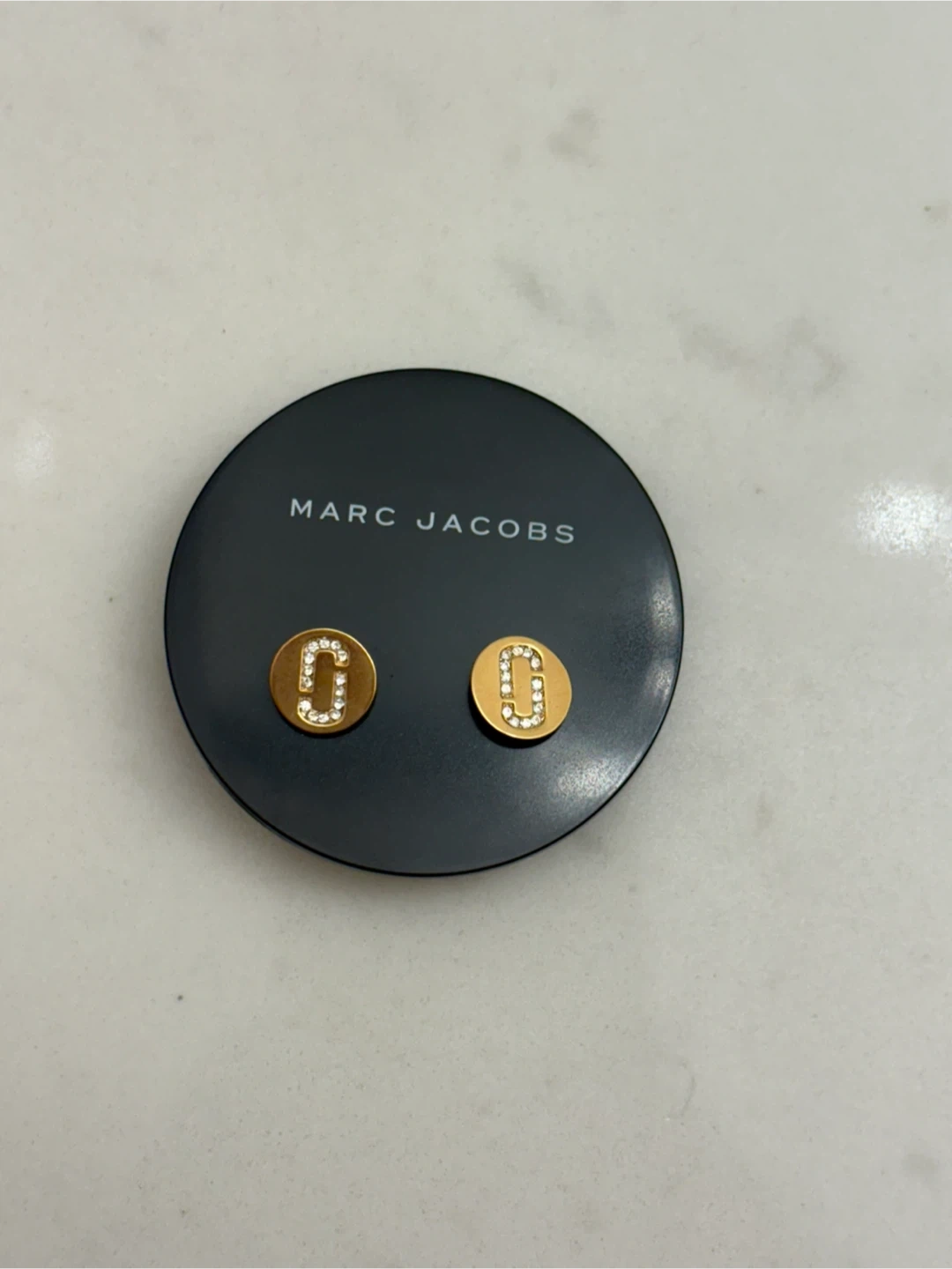 Selling a pair of Marc Jacobs stud earrings. They're gold in colour and feature a 'C' design with small stones. Perfect for adding a bit of sparkle to your everyday look!