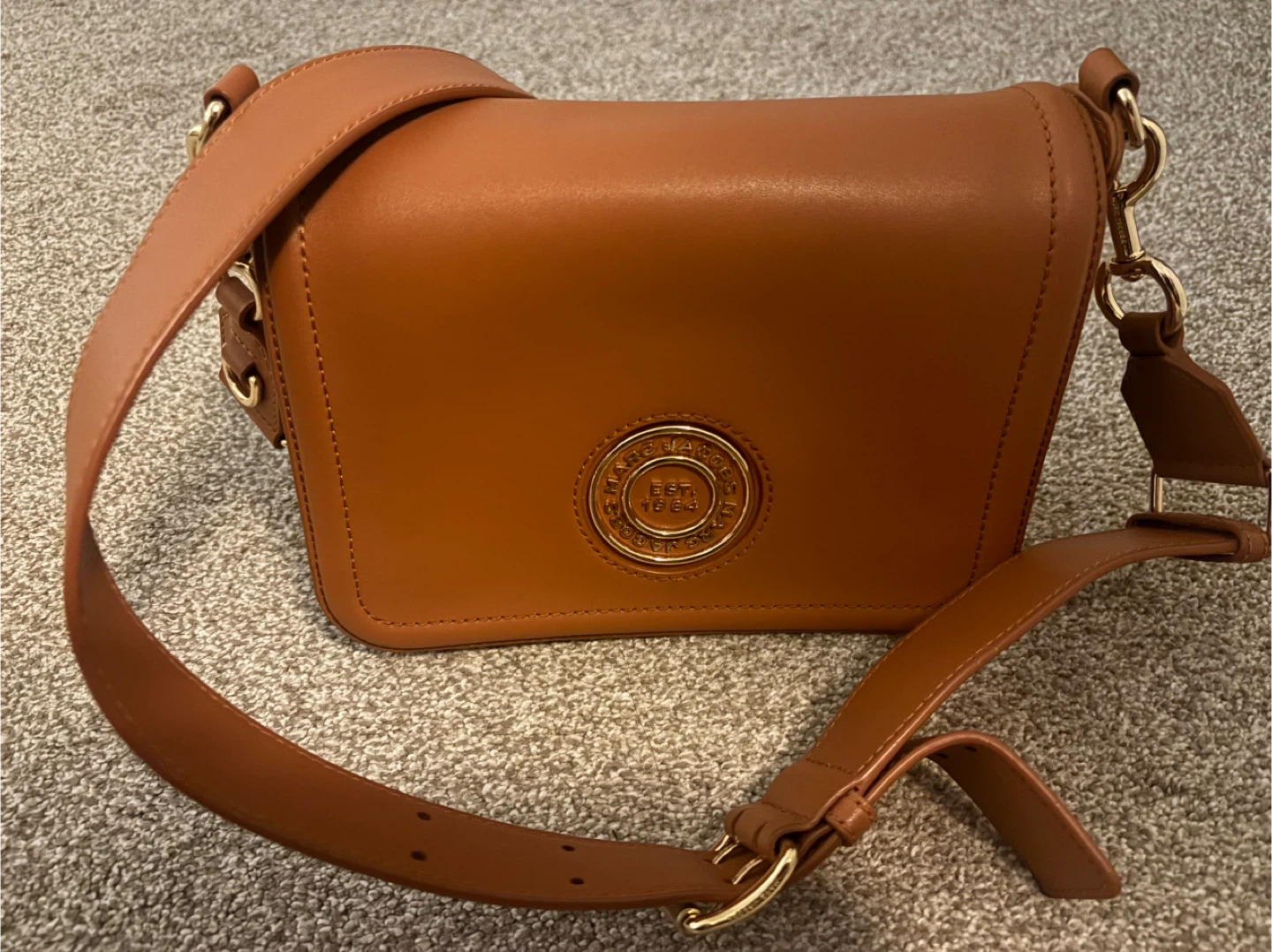 Selling a lovely Marc Jacobs crossbody bag in a beautiful brown colour. It's in great condition and perfect for everyday use. The bag features a stylish design with the brand's logo prominently displayed. It's a great size for carrying your essentials while keeping your hands free