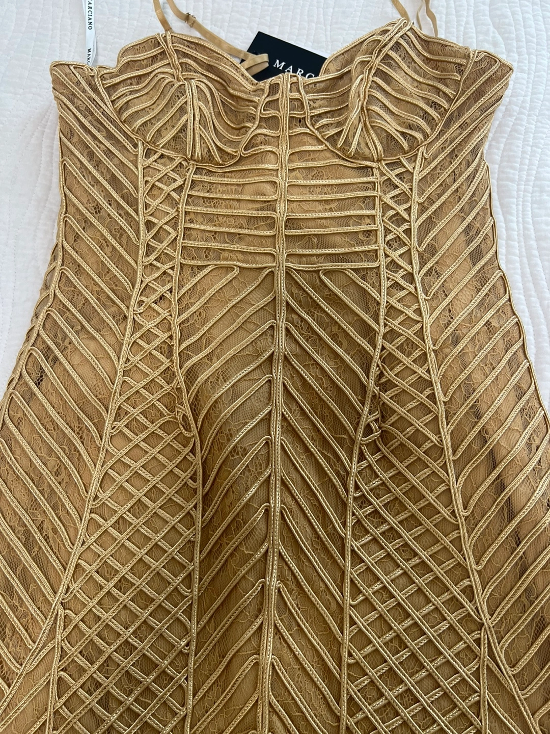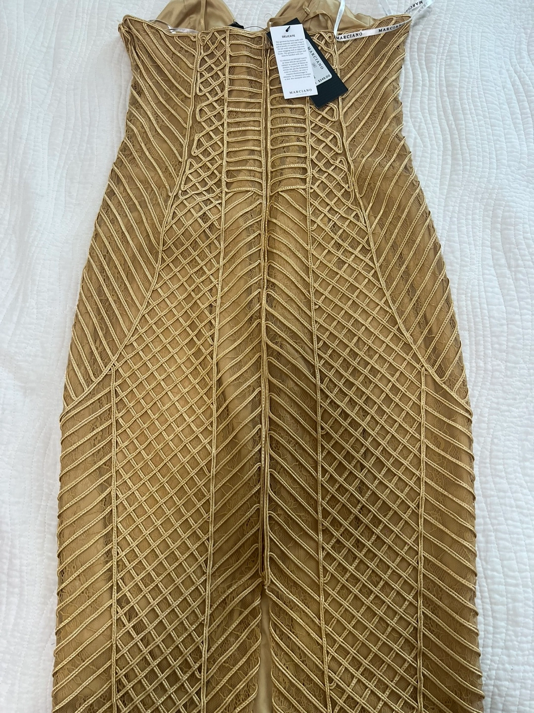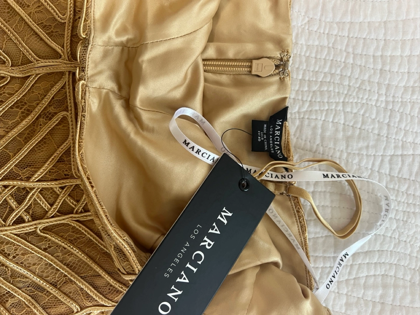 Selling a beautiful Marciano Los Angeles dress! It's a stunning gold colour with a unique geometric pattern. Perfect for a night out or a special occasion. The dress is in excellent condition and ready for a new home!