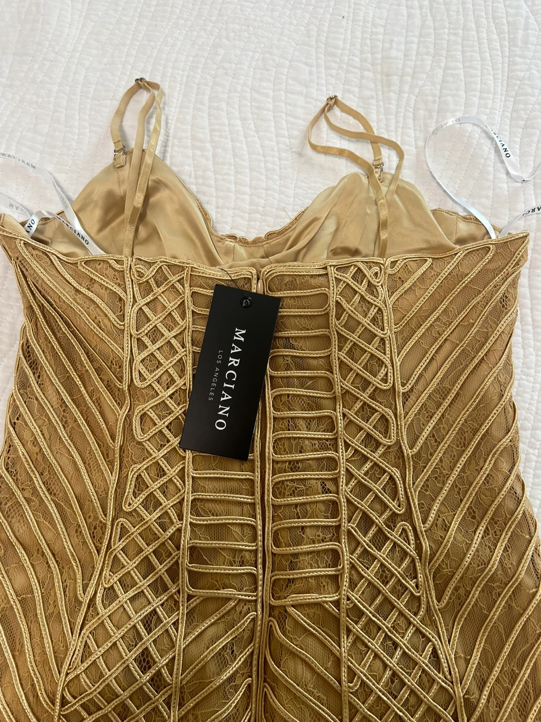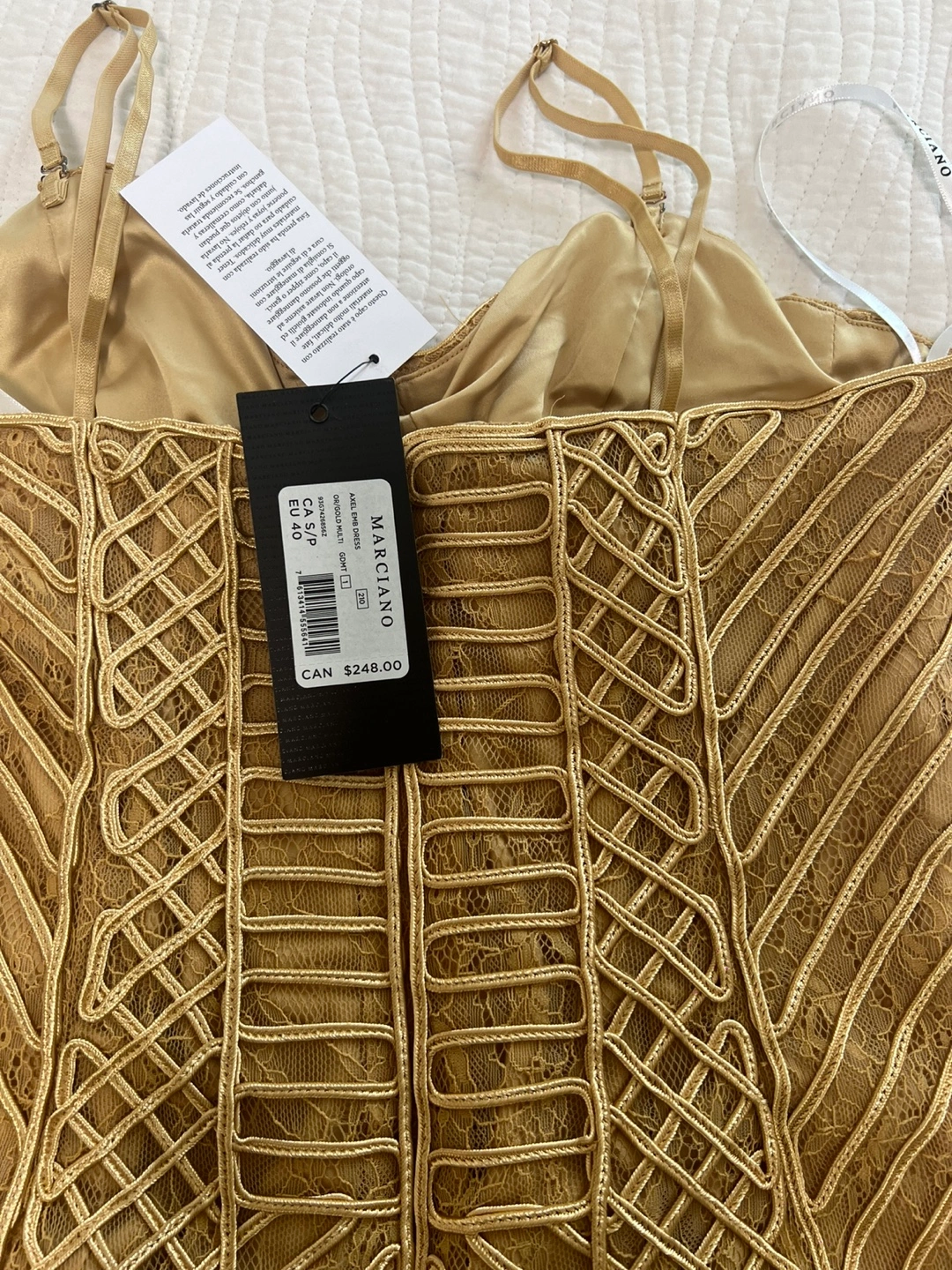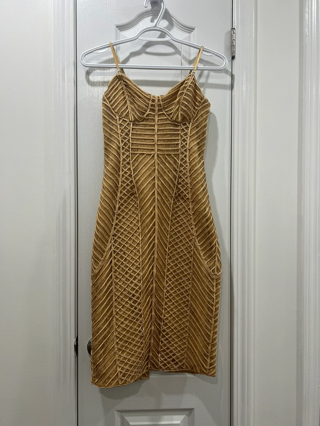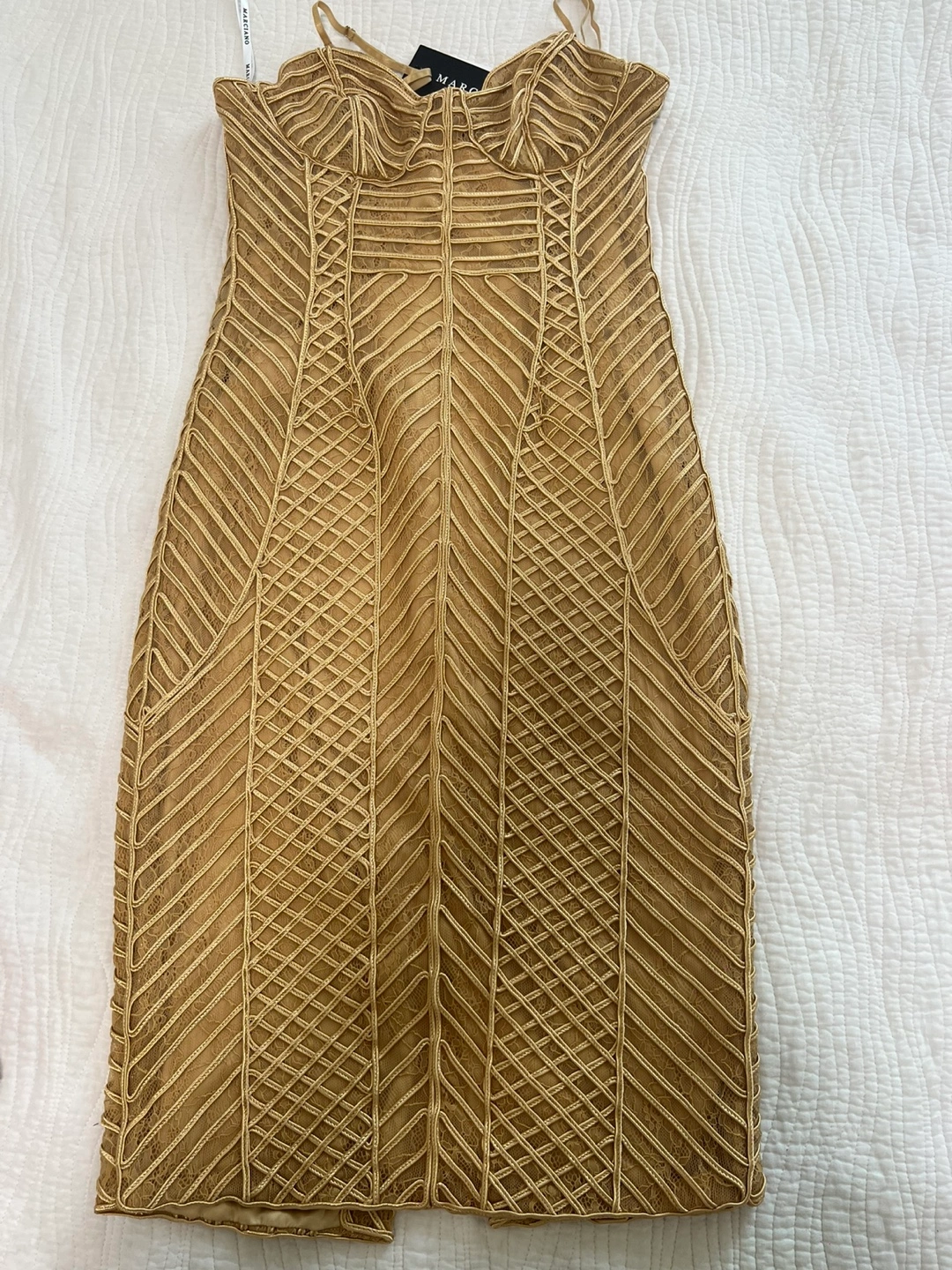 Selling a beautiful Marciano Los Angeles dress! It's a stunning gold colour with a unique geometric pattern. Perfect for a night out or a special occasion. The dress is in excellent condition and ready for a new home!